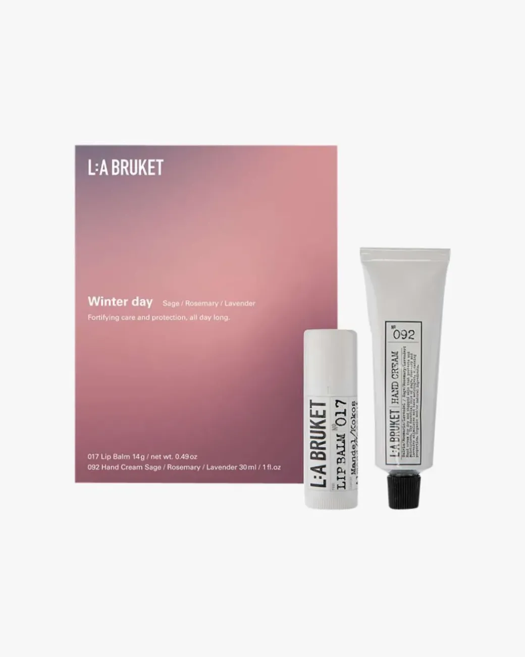 Gavesettet inneholder: 017 Lip Balm 14g og 092 Hand Cream Sage/Rosemary/Lavender 30ml.