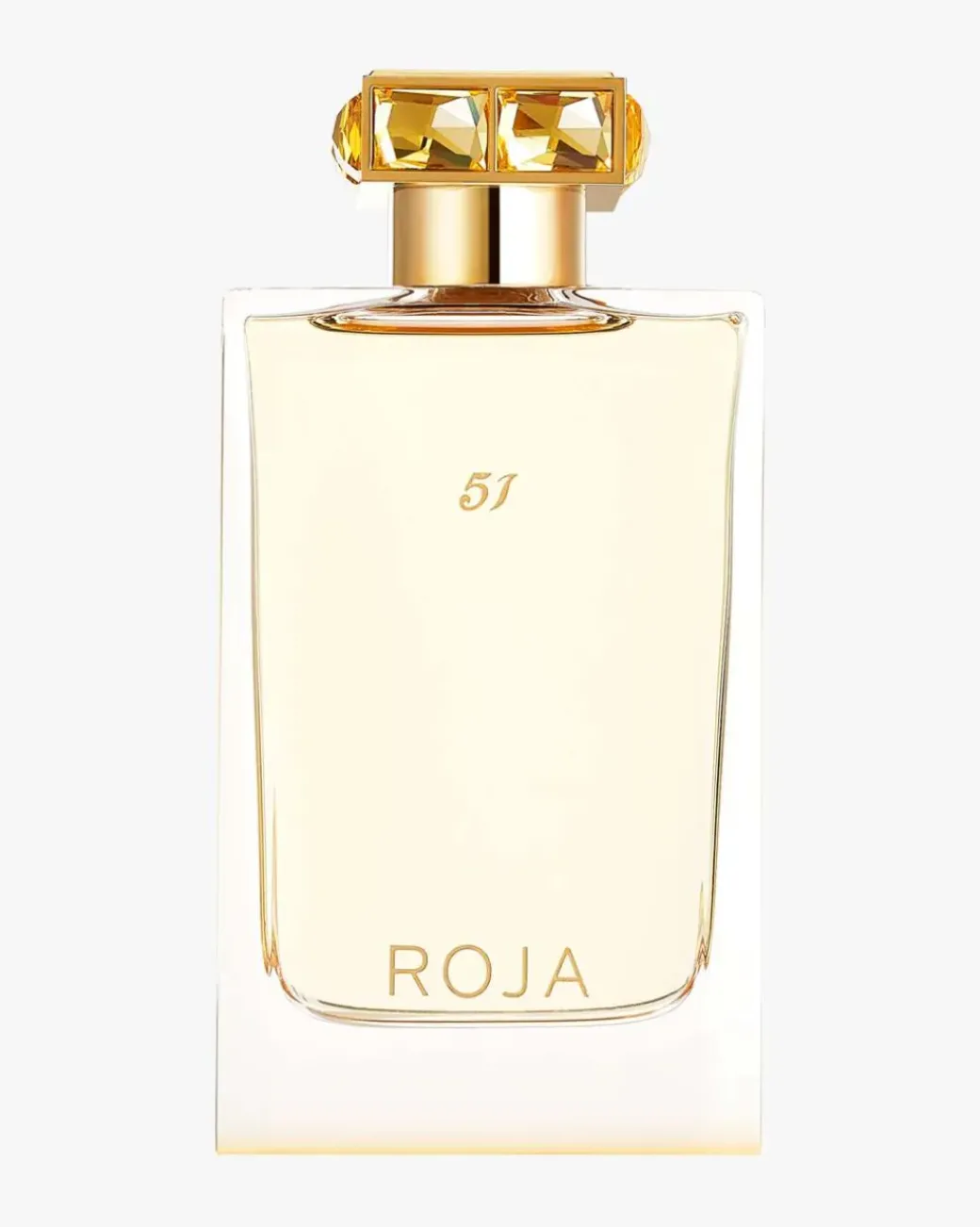 Roja Parfums 51 Essence de Parfum er en duft av rose og sjasmin, skapt for Roja Parfums luksuriøse kvinne. 51 portretterer en eksotisk og floral skjønnhet som det er umulig å ikke elske. Med søte og saftige noter av bringebær, myke og appetittvekkende noter av benzoin, omsluttet av myk vanilje som skjærer igjennom syrligheten for å skape et perfekt balansert søtt senter. Krydrede noter av anis, kanel og nellik bringer en livlig varme som gir liv til den overbærende rav-akkorden. Åtte vakre blomster spinner rundt en bukett av rose, sjasmin og lilje. Luksuriøse, treaktige noter av kashmir og sandeltre som setter seg tett på huden, med et snev av pudret iris i bakgrunnen.