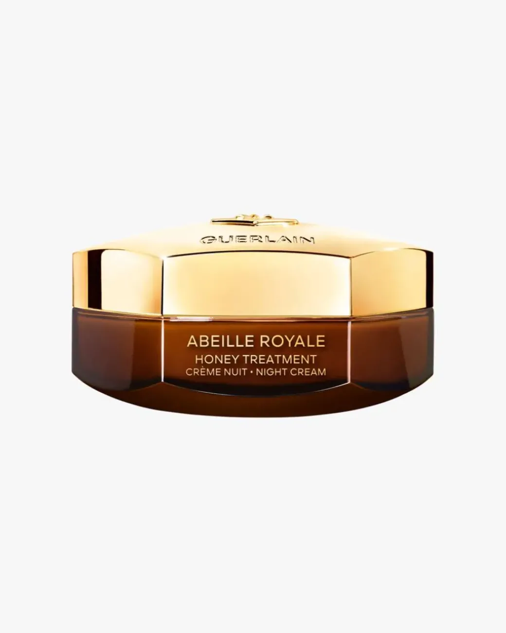 Guerlain Abeille Royale Honey Treatment Night Cream. Inspirert av klinisk reparerende honningbandasjer, konsentrerer den påfyllbare Honey Treatment Night Cream de kraftigste produktene fra bier valgt av Guerlain-forskningen for å korrigere 4 synlige tegn på kollagentap knyttet til aldring. Rynker reduseres, huden blir tettere og gjenoppretter sin fyldighet. Ansiktet er redefinert og ser synlig yngre ut. Den er produsert ved hjelp av en formuleringsprotokoll som skaper en fillertekstur med en bandasjeeffekt som sømløst blir ett med huden, og impregnerer alle epidermallagene med ungdomsreparerende aktive ingredienser.