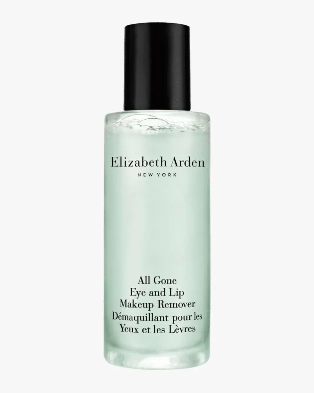 Elizabeth Arden All Gone Eye & Lip Makeup Remover 100ml, er et dobbelt-faset rensesystem spesielt formulert for varsomt å fjerne øyenmake-up og leppestift… inkludert “kyssekte”, smittefrie og vannfaste produkter. Med sin delikate to-trinns konsistens, renser “All Gone” sensible hudpartier som øyenomgivelser og lepper på en rask og grundig måte, uten minste tegn til tørrhet.