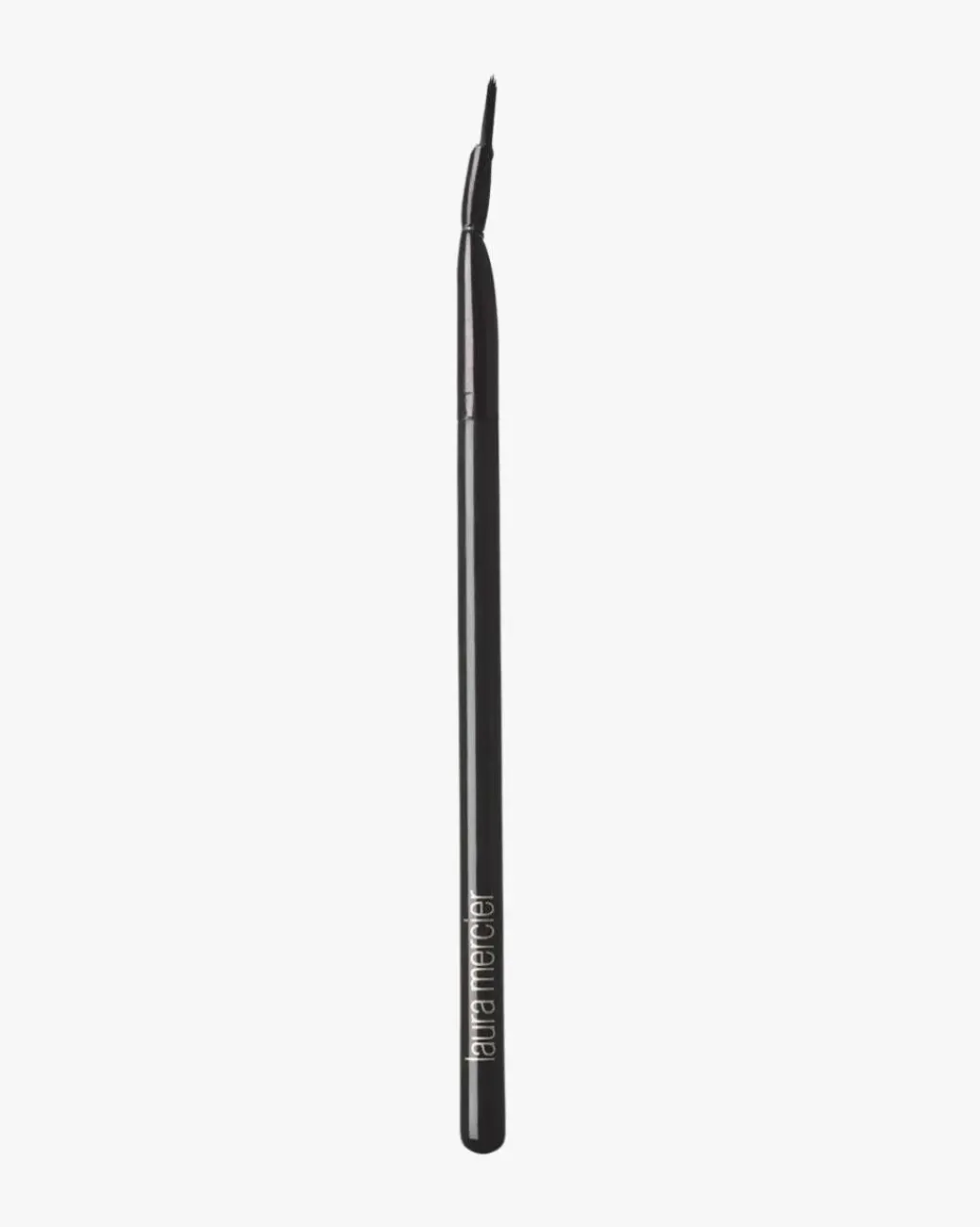 Laura Mercier Angled Eye Liner Brush. Børsten er laget av de beste syntetiske hårene og gir en smal spiss og tett børste for høy presisjon. Det vinklede skaftet gjør det enkelt å komme til over øyenvippene for en jevn påføring langs vipperaden.Det korte skaftet gjør det lett å stå nært et speil ved påføring. Spissen på børsten gjør det mulig med en tynn, fin linje. Dersom du ønsker en bredere linje, er det bare å øke trykket på penselen.