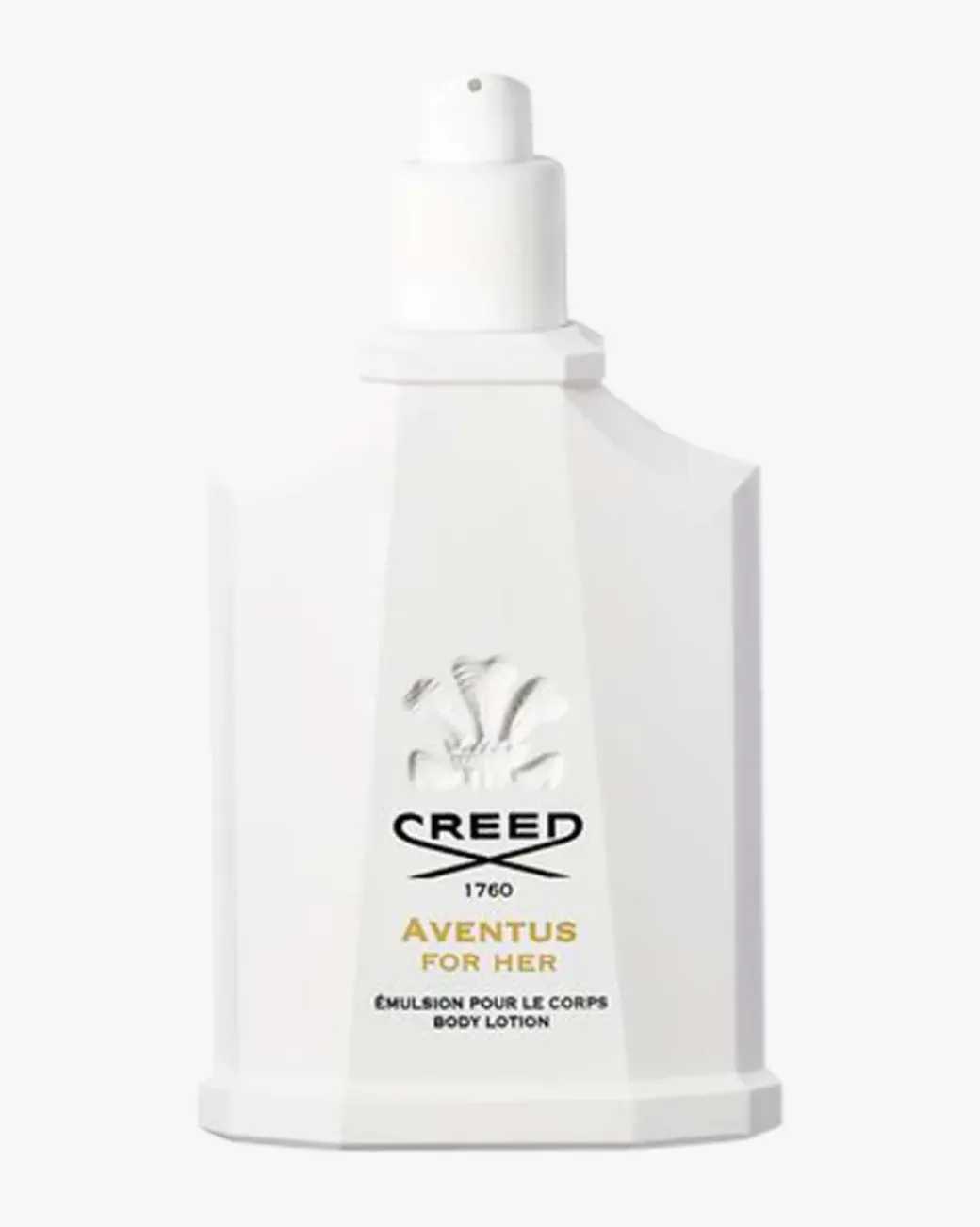 Creed Aventus For Her Body Lotion. Inspirert av den ikoniske dameparfymen Aventus for Her, er denne luksuriøse body lotionen tilsatt macadamiaolje, som etterlater huden naturlig myk og hydrert – et perfekt tillegg til enhver morgenrutine. Fruktig med toner av skarpt grønt eple sammenstilt med søt duftende rose og ylang-ylang, etterlater denne body lotionen huden med en rik duft som varer hele dagen.