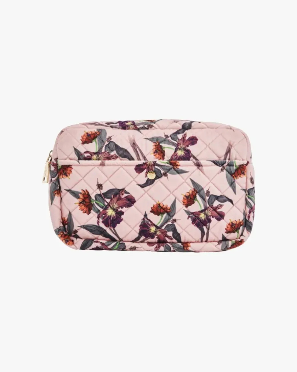 Fan Palm Rose Hibiscus Large Beauty Bag er en myk skjønnhetsveske i vattert fløyel eller bomull. Noen er ideelle for reiser, og andre for hjemmebruk. De er alle fantastiske med plass til sjampo, børster, kosmetikk og kremer – og alle slags eventyr.
