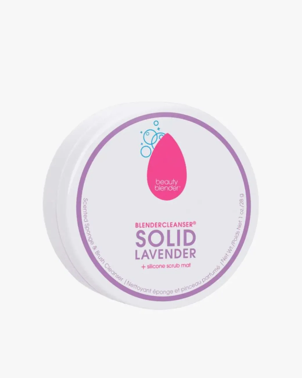 beautyblender Blendercleanser Solid er et rengjøringsmiddel som fjerner smuss og bakterier i beautyblenderen. Den egner seg også til rengjøring av makeupbørster og andre applikatorer. Blendercleanser Solid holder makeupsvampen hygienisk. Det er viktig å alltid rengjøre din beautyblender etter bruk. Renseproduktet har en beroligende duft av lavendel.