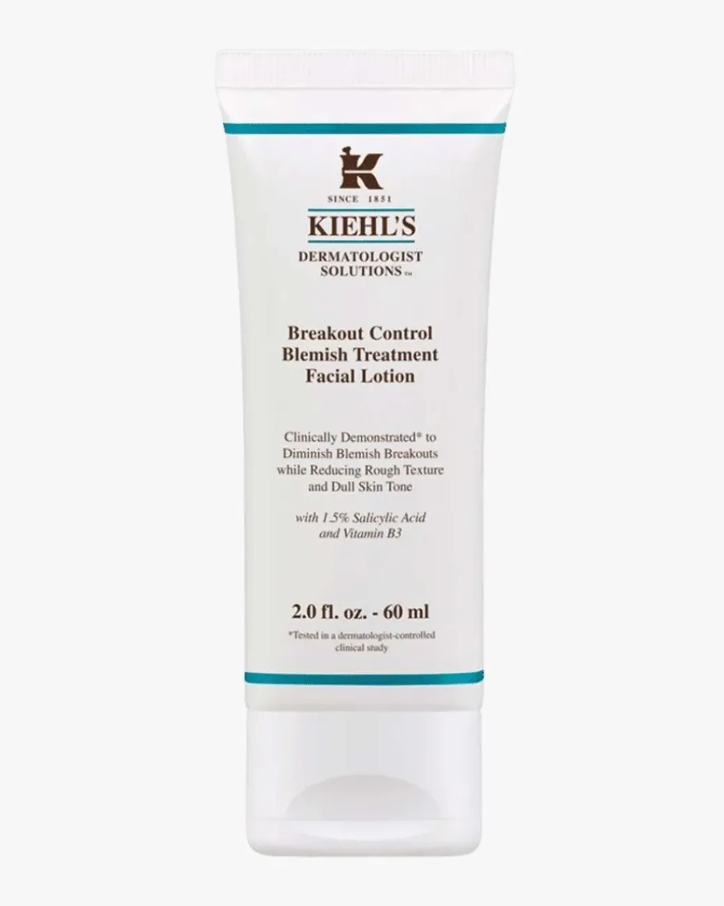 Kiehl’s Dermatologist Solutions Breakout Control Blemish Treatment Lotion. Kiehl´s introduserer Breakout Control Blemish Treatment Facial Lotion – en ansiktslotion som forebygger dannelse av nye urenheter, forbedrer hudens tone og gjør hudens tekstur mindre grov. Inneholder bl.a. salisylsyre og vitamin B3.
