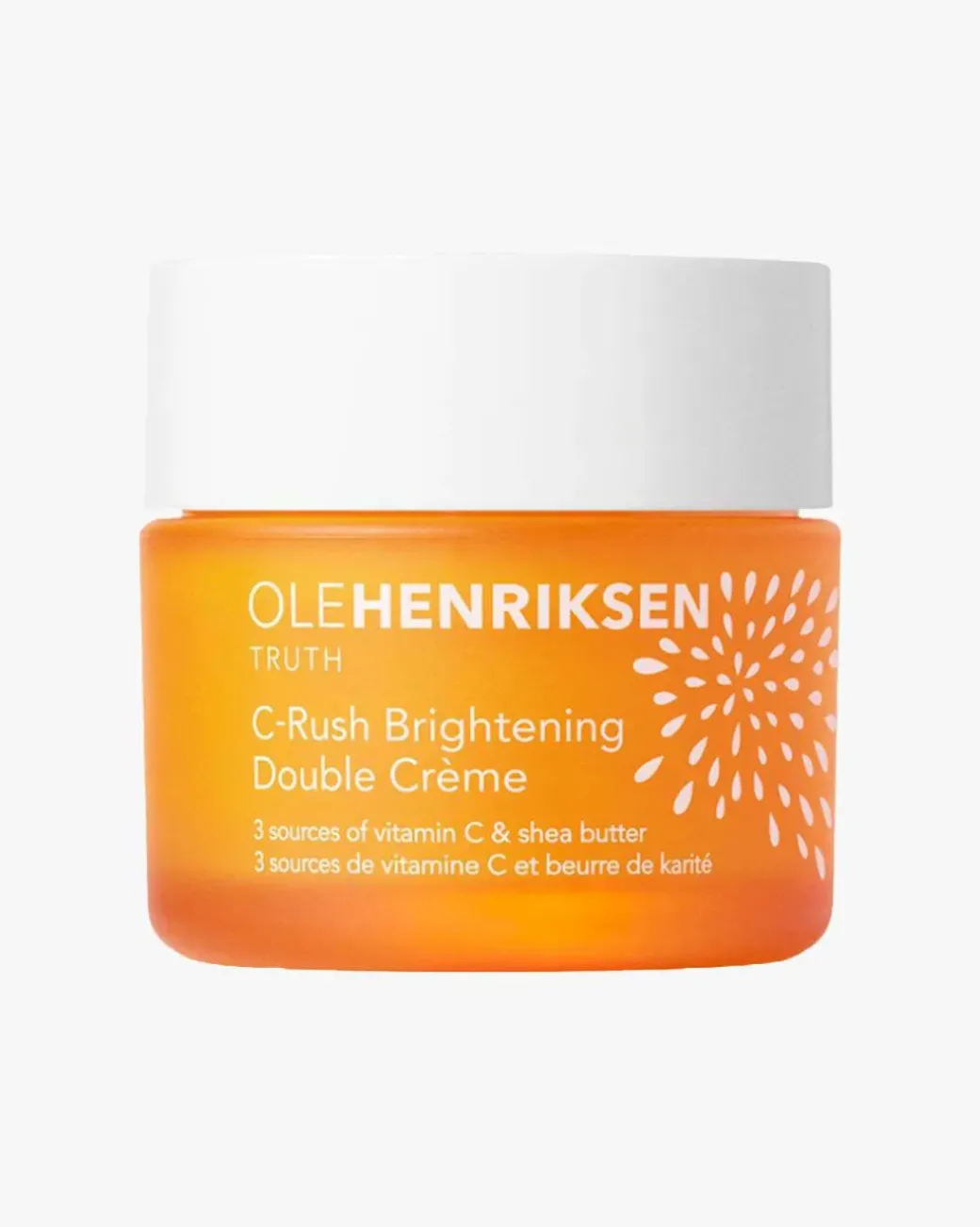 Ole Henriksen C-Rush Brightening Double Creme. En luksuriøs og rik dagkrem som gir ekstra tørr hud masse fukt, samt lysner og bekjemper synlige tegn på aldring. C-vitamin fra 3 kraftige kilder sørger for lysnende effekt og strammer opp huden, mens sheasmør gir masse fukt og næring. Den fantastiske konsistensen absorberes lett og etterlater huden silkemyk.