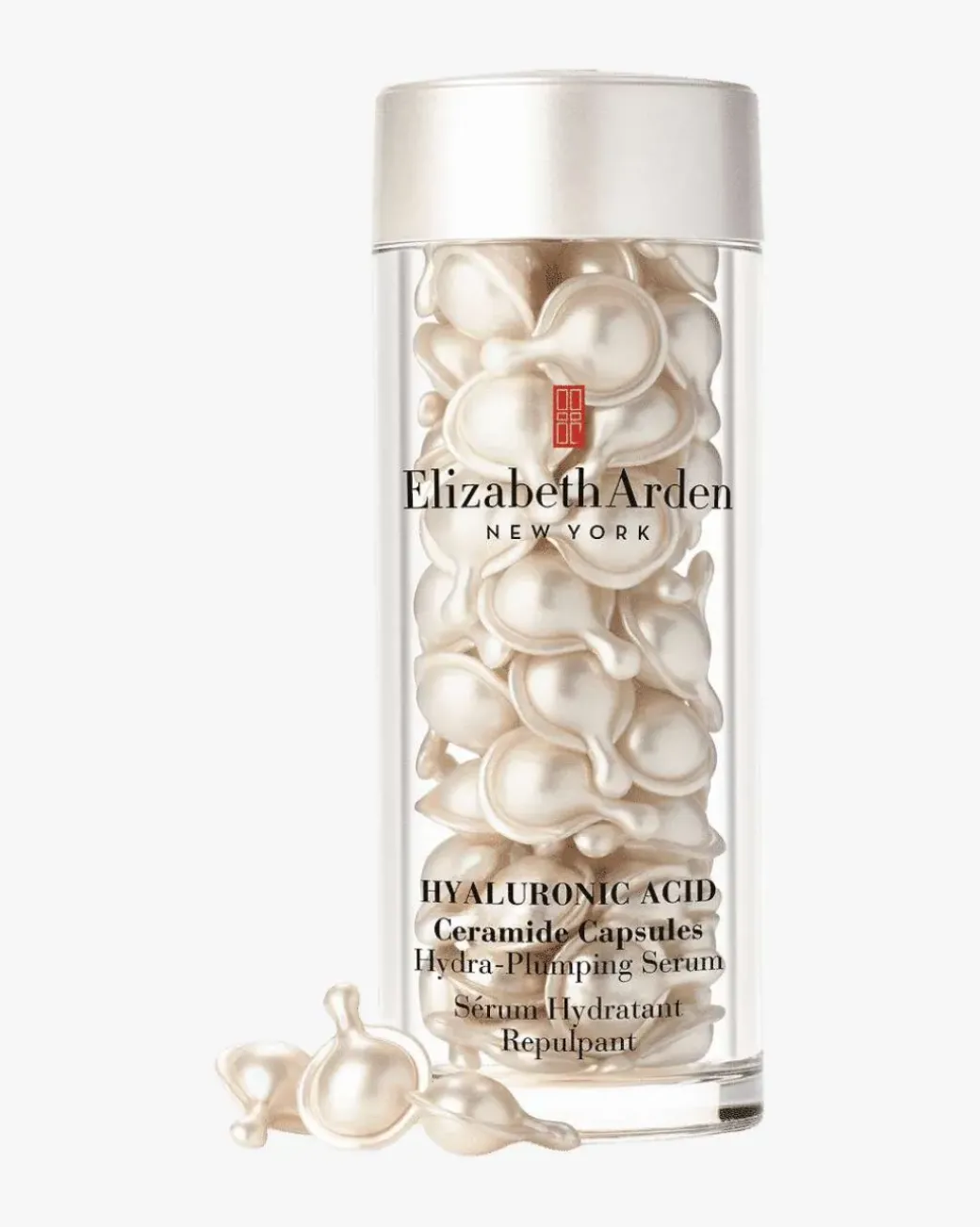 Elizabeth Arden Hyaluronic Acid Ceramide Capsules er et serum bestående av hyaluronsyre og ceramider som gir intens fuktighet med plumping effekt. Sammen styrker de huden og gjenoppretter hudens elastisitet. Huden fylles ut fra innsiden slik at ansiktskonturene er skarpere og mer definert. Dette silkeaktige, lette serumet har egenskapen Dubble-Lock hydrering. Hyaluronsyre absorberer fuktighet mens ceramider låser fuktigheten inne slik at huden holdes fuktig lenger og virker mer spenstig. Serumet kommer som enkel-dose-kapsel som gir nøyaktig dosert mengde serum i en kapsel. Serumet er da beskyttet mot lys og luft og derfor helt ren og potent når den brukes. Kapselen er biologisk nedbrytbart. Ingen tilsatt duft.