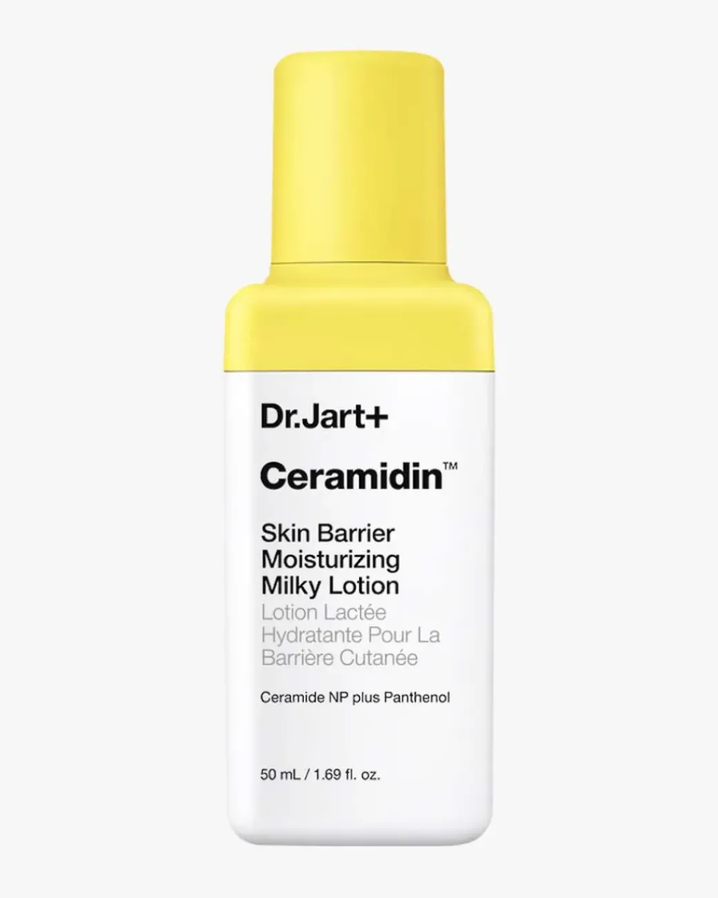 Dr.Jart+ Ceramidin™ Skin Barrier Moisturizing Milky Lotion er en fuktighetsgivende, men ultralett lotion, beriket med Ceramide NP, panthenol og glyserin, som umiddelbart øker fuktighetsnivåene med +110%* og styrker hudens barriere, slik at huden blir duggfrisk, hydrert og ser sunn ut.