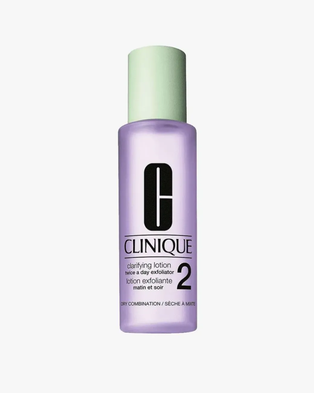 Clinique Clarifying Lotion 2 er en eksfolierende, flytende lotion som er egnet for Cliniques hudtype 2: tørr til kombinert hud. Den skal brukes som trinn 2 i Cliniques 3-trinns hudpleiesystem, etter at huden er renset. Den gir huden en mild peeling som fjerner smuss, forurensning og døde hudceller, samtidig som den stimulerer hudens cellefornyelse.