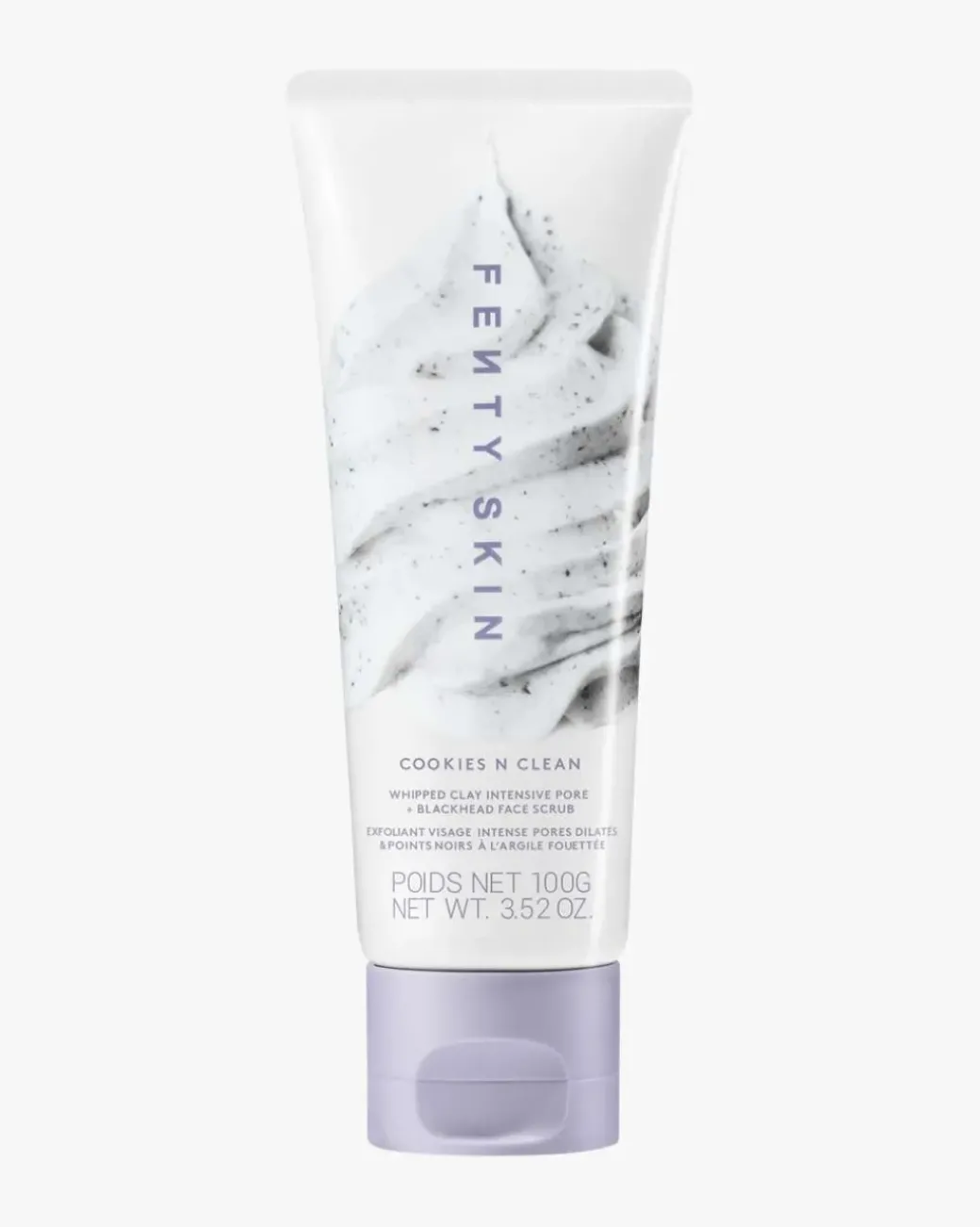 Fenty Skin Cookies’n’Clean Intensive Pore + Blackhead Face Scrub. Det er alt du elsker ved en eksfolierende skrubb, innkapslet i en sky av pisket leire som etterlater huden glatt, myk og ustresset. Unik, lett tekstur som effektivt polerer, eksfolierer og gir ny struktur til huden.