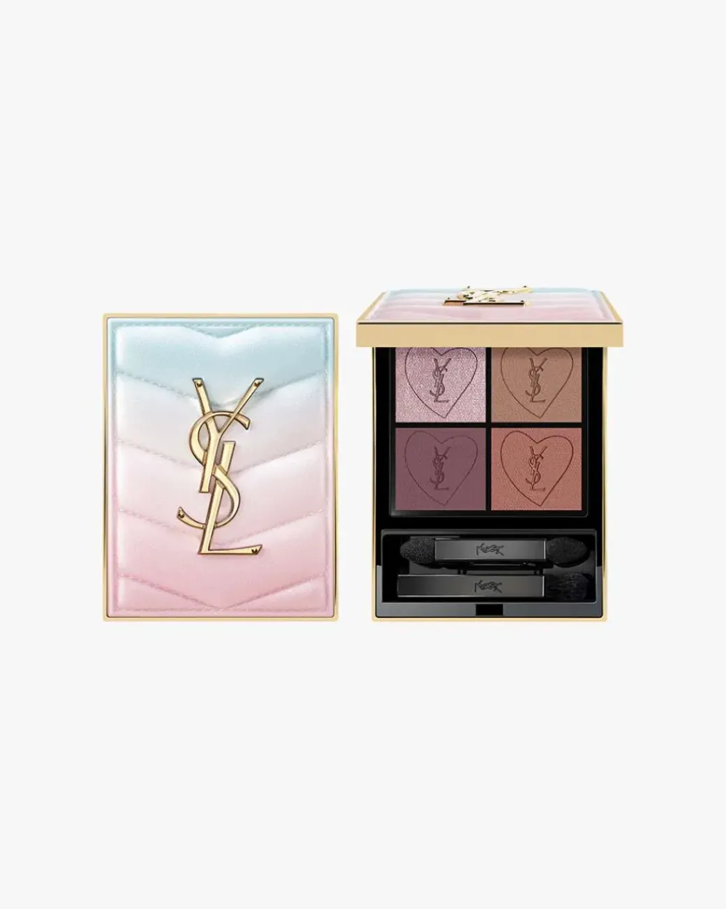 Yves Saint Laurent Couture Mini Clutch Valentine Edition. Denne Valentinsdagen inviterer YSL deg til å søke kjærlighet uten grenser. Kledd i det friske blå til rosa gradientantrekket, lar den begrensede utgaven Couture Mini Clutch #125 deg feire kjærligheten din fra soloppgang til solnedgang! Den nye nyansen Endless Love, laget med blått glitter, er den perfekte prikken over i'en for å fullføre fargereportoaret i øyenskyggepaletten din!