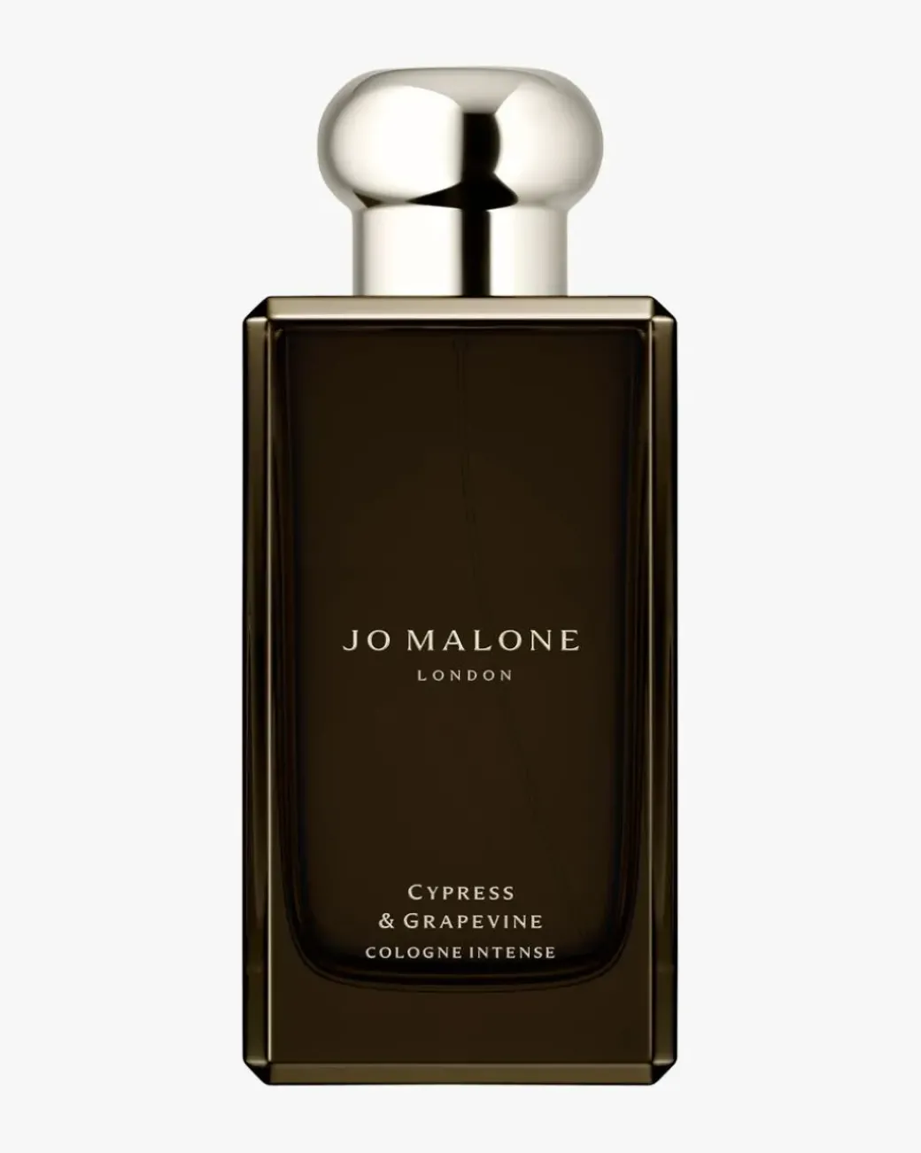 Jo Malone London Cypres & Grapevine Cologne Intense. En frodig hengende hage med store terrasser og forseggjorte buer. Majestetiske sypresser sprer den friske, aromatiske duften sin, støttet av duften av sammenvevde vinranker og med et hint av dyp rav. Aromatisk og sanselig.