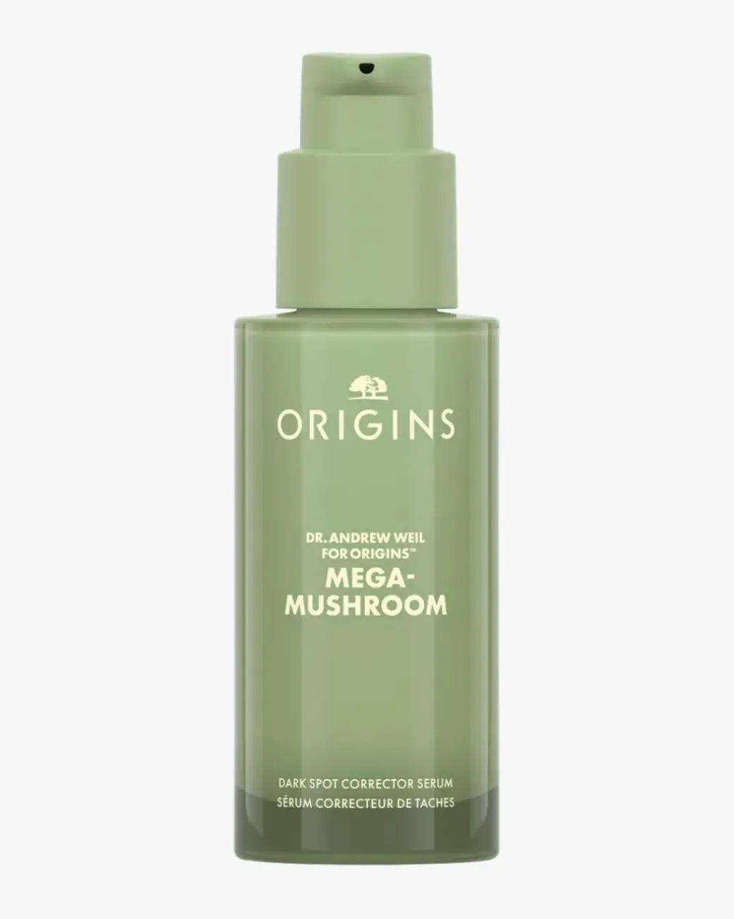 Origins Dr. Andrew Weil For Origins™ Mega-Mushroom Dark Spot Corrector Serum er et høyt konsentrert serum som bidrar til synlig reduksjon av mørke flekker og misfarging for en jevnere, naturlig feilfri hud.