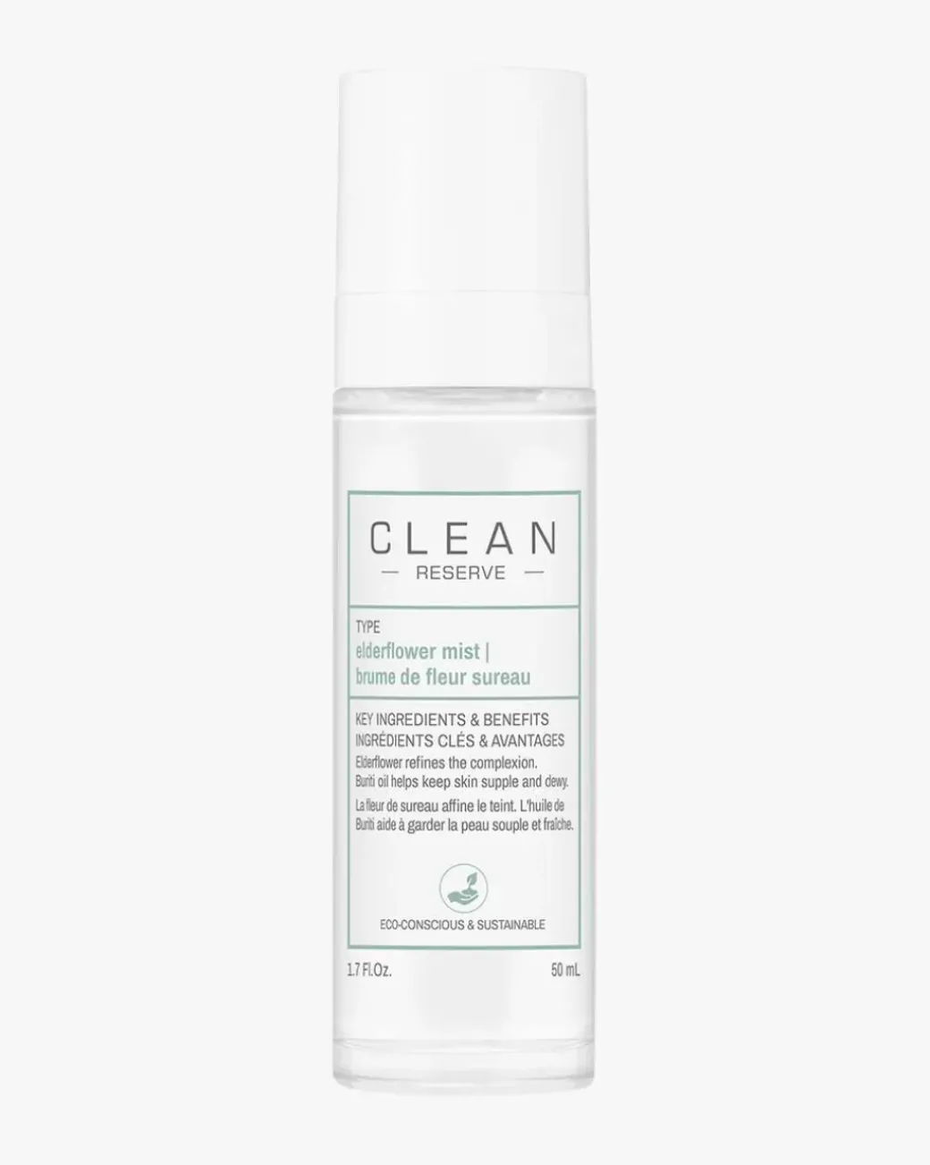 Clean Elderflower Mist er en multi-tasking ansiktsmist som hydrerer og balanserer huden samtidig som den gir den glød. Formelen foredler hudens tekstur og gjør den myk og smidig, samtidig som den hjelper huden med å kontrollere talgproduksjonen.