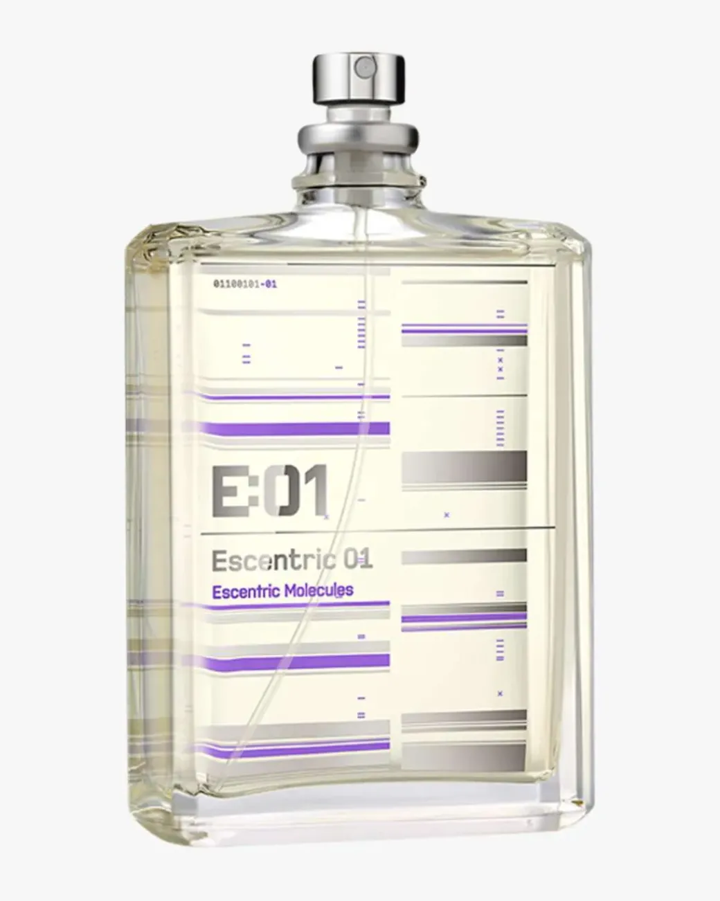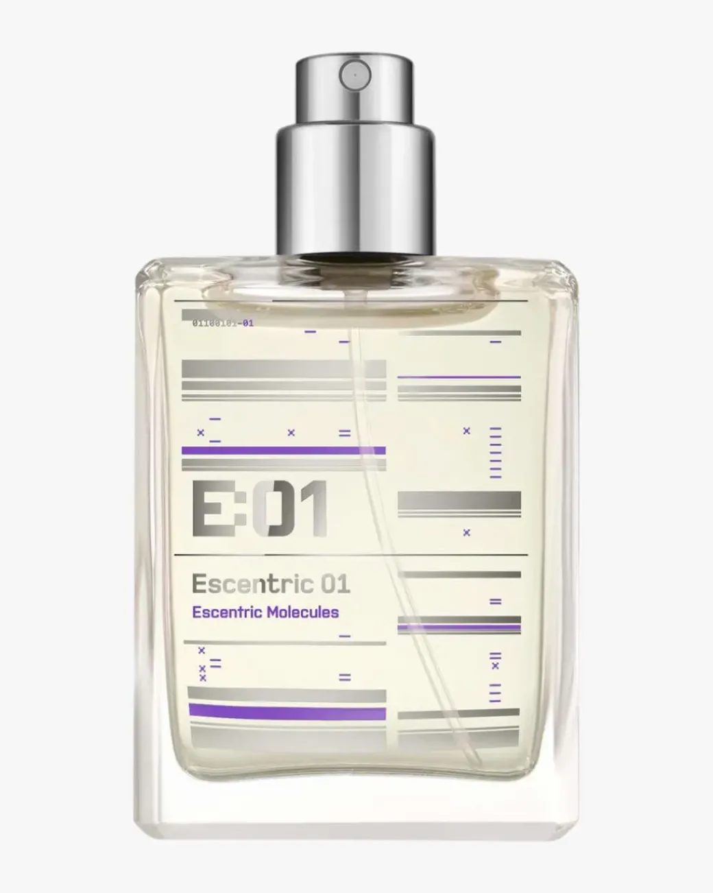 Escentric Molecules Escentric 01 inneholder en høy konsentrasjon av det molekylære stoffet «Iso E Super». Hele 65% sammen med rosepepper og lime, i en ny balansert form. I motsetning til den tradisjonelle duftformelen med topp, hjerte- og bunnoter, beveger Escentric 01 seg raskt fra topp til bunn og blir lengre i den basale duftnoten som skifter mellom sanselige og varme duftnoter. Det er som om Escentric 01 ikke har noe hjerte, men en enorm sjel!