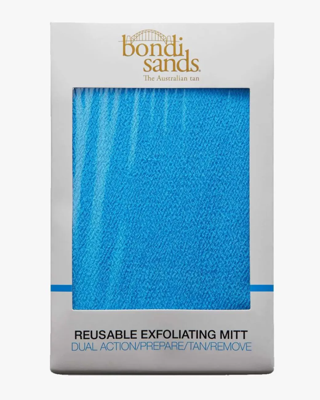Bondi Sands Exfoliation Mitt forbereder huden din for en jevn og feilfri brunfarge. Den svarte siden fjerner tørre, gamle hudceller og rester fra tidligere selvbruning. Den blå siden virker stimulerende for kroppen og jobber med oppstramming av huden.