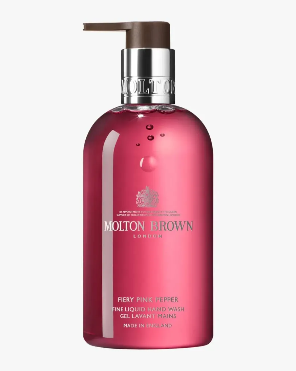 Molton Brown Fiery Pink Pepper Hand Wash. Blomster- og fruktnoter løfter krydrede dufter og etterlater hendene rene med en diskret attraktiv duft.