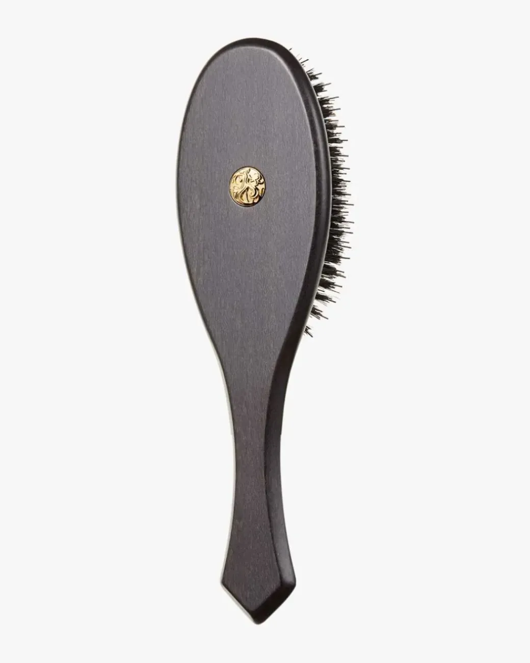 Oribe Flat Brush. Denne signaturbørsten er laget i europeisk bøketre og kombinerer håndverksdesign med ergonomiske håndtak for perfekt grep og balansert vekt. Alle børster er lakkert for hånd. Selve børsten kommer i en blanding av høykvalitets villsvin og nylonbust med en naturlig gummipute. Busten og nylonavrundede endene stimulerer delikat hodebunnen og polerer håret for en ultra-elegant, skinnende finish. Laget i Italia.