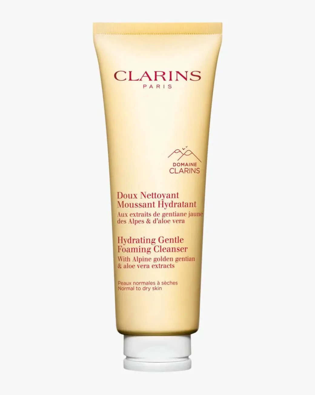 Clarins Gentle Foaming Cleanser Hydrating. Beriket med urteekstrakter fra Domaine Clarins, fjerner denne skummende ansiktsrensen sminke, eliminerer urenheter samtidig som den fukter og opprettholder en balansert hud. Den er rik på økologisk aloe vera-ekstrakt for å fukte huden og gjøre den smidig og komfortabel, som passer perfekt for å balansere normal til tørr hud. Formelen er også rik på Clarins [Gentle Complex] med økologisk gulsøteekstrakt og sitronmelisseekstrakter for å berolige og mykgjøre huden. Takket være moringaekstrakt, forhindres forurensningspartikler i å feste seg til huden.