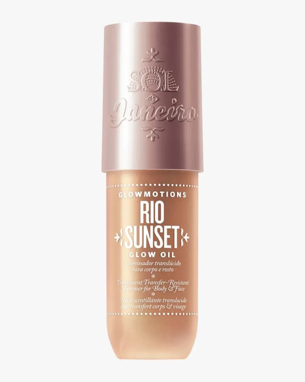 Sol de Janeiro Glowmotions – Rio Sunset gir den ultimate brasilianske hemmeligheten for å fremheve dine vakre former og markere dine beste trekk. En mykgjørende tørrolje med akkurat passe mengde shimmer – ikke for mye, ikke for lite, akkurat nok til at lyset reflekteres vakkert på alle hudtoner. Fylt med en herlig duft som gjør at du hver dag vil lukte, se og føle deg som en brasiliansk gudinne. Gir en vakker glød til alle hudtoner. Gir en deilig, myk «brazilian babe» – hud. En lett olje som smelter raskt og enkelt inn i huden for en umiddelbar fuktet hud med en glødende finish. Med vår brasilianske signatur blend. Cupuacu smør- Full av fettsyrer, fytosteroler og polyfenoler som bidrar til å holde på fuktigheten i huden og hjelper til med å gjenopprette hudens elastisitet. Acai olje- Proppfull av kraftige antioksidanter som bidrar til at huden føles og ser yngre ut. Kokosolje- Smelter enkelt inn i huden. Virker mykgjørende, fuktighetsgivende og nærende. Etterlater en deilig duft. Alle Glowmotions er fylt med vår signatur Cheirosa ’62 Bum Bum krem duft. Etterlater en herlig duft med noter av pistasj og saltet karamell.