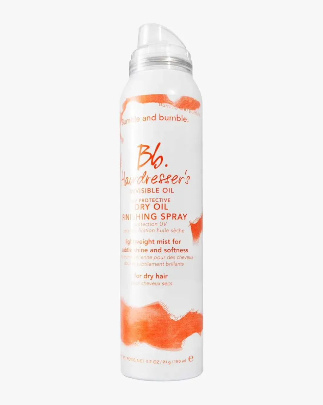 Bumble and bumble Hairdresser’s Invisible Oil UV Protective Dry Oil Finishing Spray er en ultralett, krusetemmende mikromist som gir en umiddelbar boost av glød og hjelper til med å fukte og myke opp tørt hår. Den ultralette, UV-beskyttende formelen gir utstråling, mykhet og frizz-kontroll, med en langvarig hold. Tørt, matt hår ser umiddelbart gjenopplivet og sunt ut.