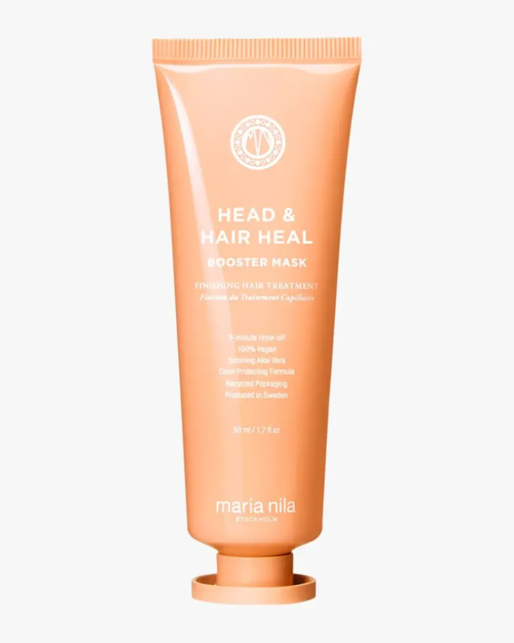 Maria Nila Head & Heal Booster Masque er en rask og dypt nærende avsluttende behandling som vil etterlate håret ditt umåtelig mykt og glansfullt. Formulert med vitamin E og eloe vera for å berolige og beskytte kløende eller flassende hodebunn, samt Colour Guard Complex som beskytter mot fargetap forårsaket av vasking, styling og UV-stråler.