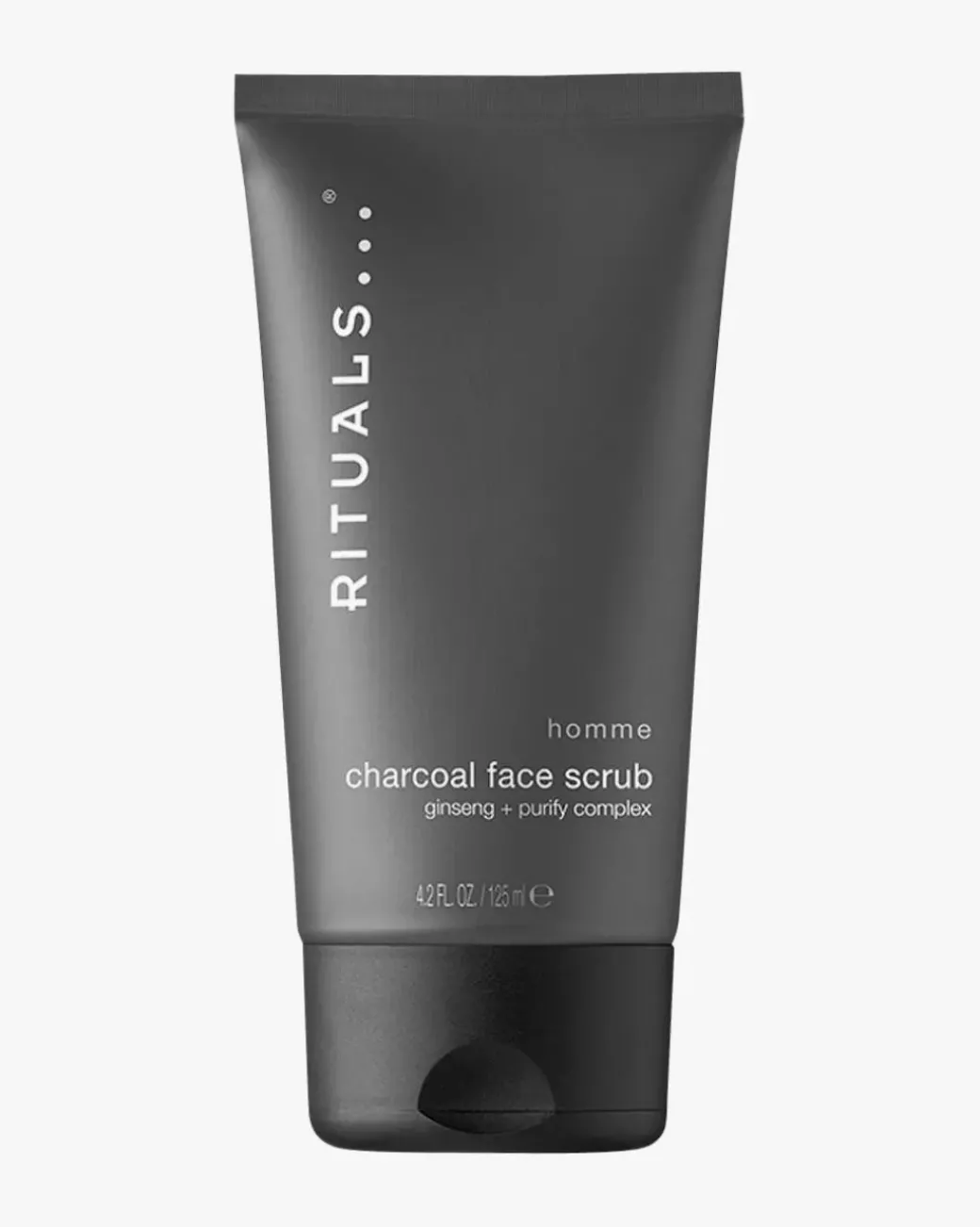 Rituals Homme Charcoal Face Scrub. Fjern urenheter og døde hudceller for å holde porene dine rene. Skrubbens formel inneholder et ginseng + Purify Complex for en oppkvikkende skrubb som renser og eksfolierer huden. I tillegg til å forfriske huden din, vil ukentlig peeling også bidra til å forhindre inngrodde hår og forbedre din neste barbering.
