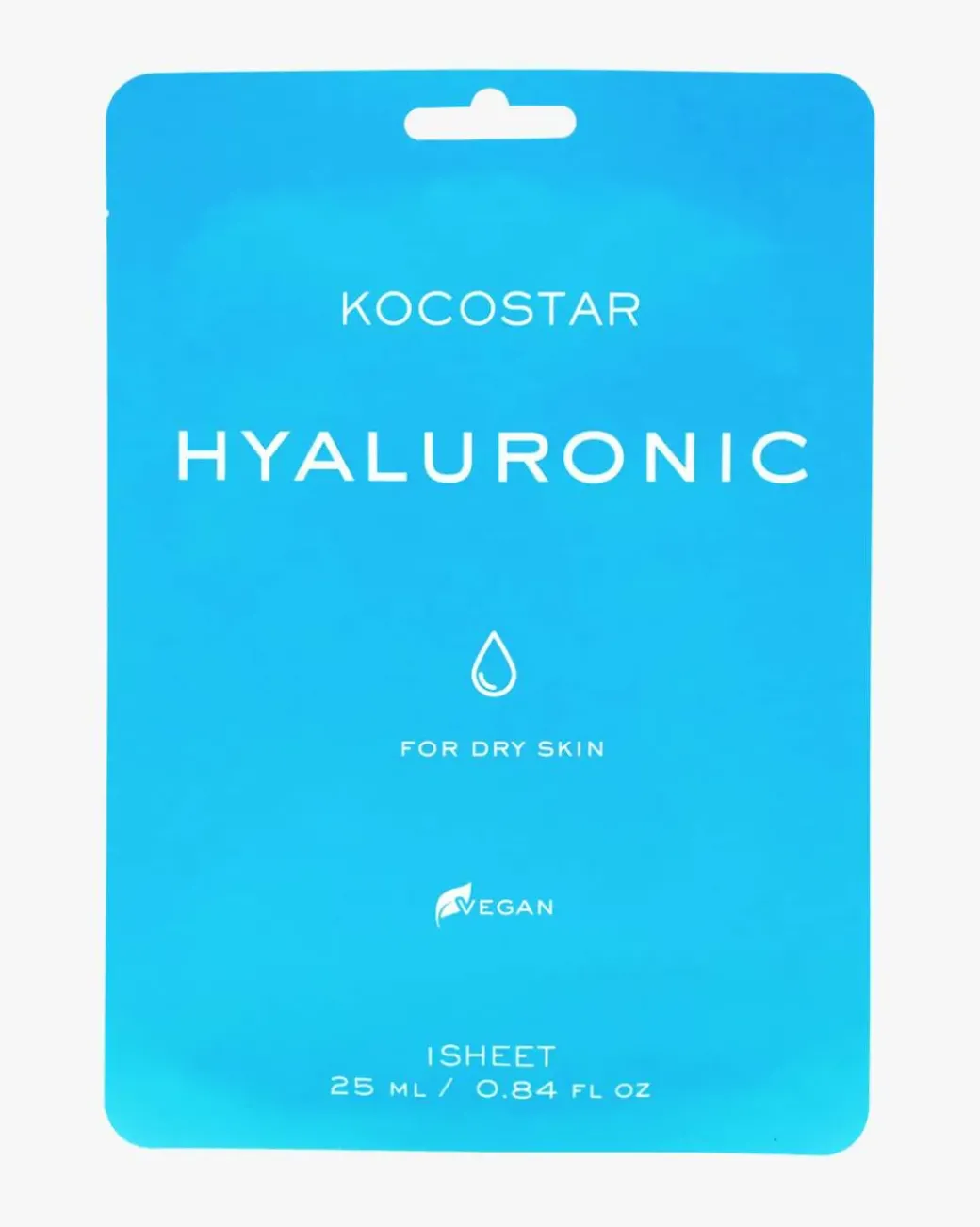 Kocostar Hyaluronic Sheet Mask gir intens fuktighet til huden ved å inneholde seks ulike typer hyaluronsyrer, ideell for tørr og dehydrert hud. Masken er laget av 100% cellulosefiber som sitter tett mot huden for effektiv absorpsjon av serumet, og den er enkel å påføre.