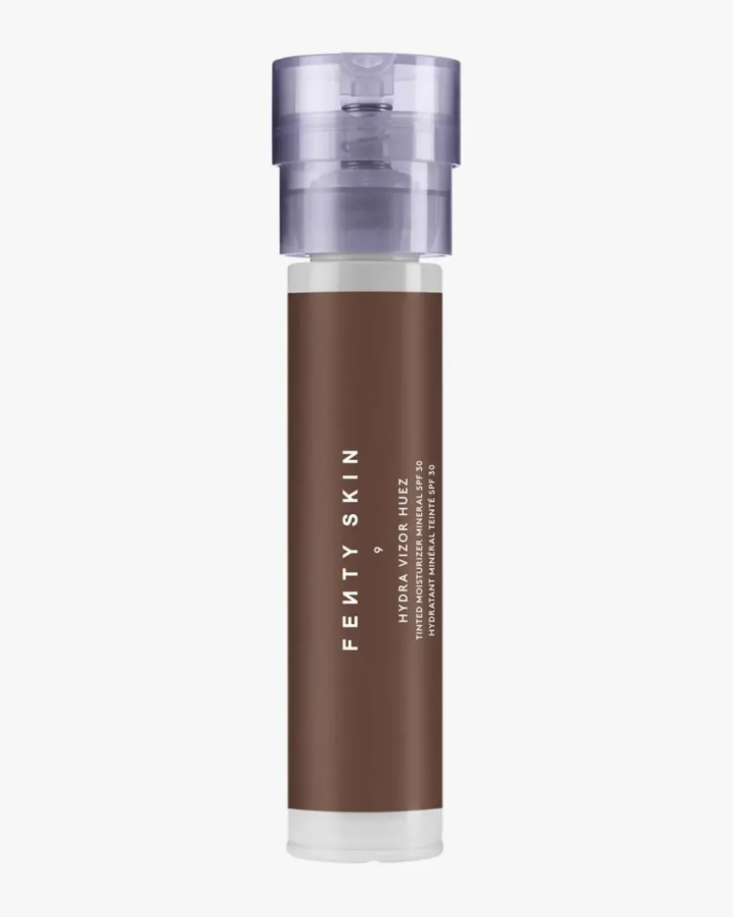 Fenty Skin Hydra Vizor Huez Tinted Moisturizer Broad Spectrum Mineral SPF30 er en farget fuktighetskrem tilsatt SPF. Den fyller huden med fuktighet, forbedrer elastisiteten og reduserer synlig porer og mørke flekker. Hver av de 10 fleksible nyansene har en naturlig, glødende finish med det perfekte nivået av pigment for å takle ujevnheter. I tillegg er den gjenfyllbar.