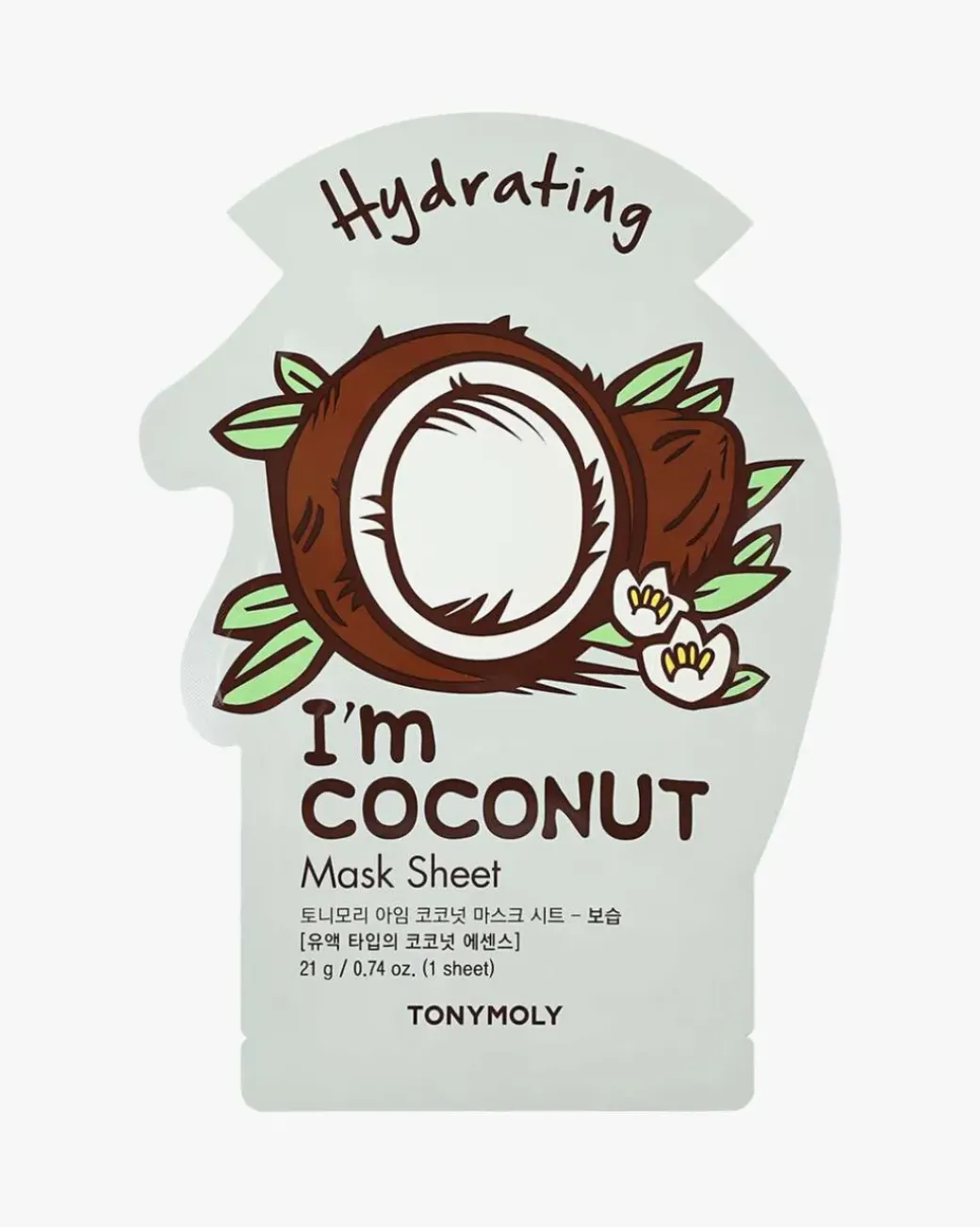 Tonymoly I’m Coconut Sheet Mask er en dypt hydrerende ansiktsmaske. Denne masken, bestående av et 3-lags sheet, er beriket med kokosekstrakt, vitamin E og andre nærende ingredienser, som samarbeider for å gi intens fuktighet til huden.