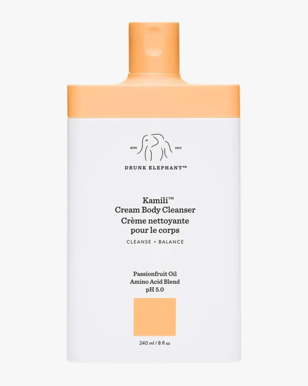 Drunk Elephant Kamili™ Cream Body Cleanser gir en skånsom rens ved hjelp av en nøye utvalgt blanding av ultra-milde overflateaktive stoffer. Samtidig tilfører den ikke-duftende planteoljer og hudstyrkende aminosyrer, som legger igjen et lett lag med beskyttende lipider på huden.