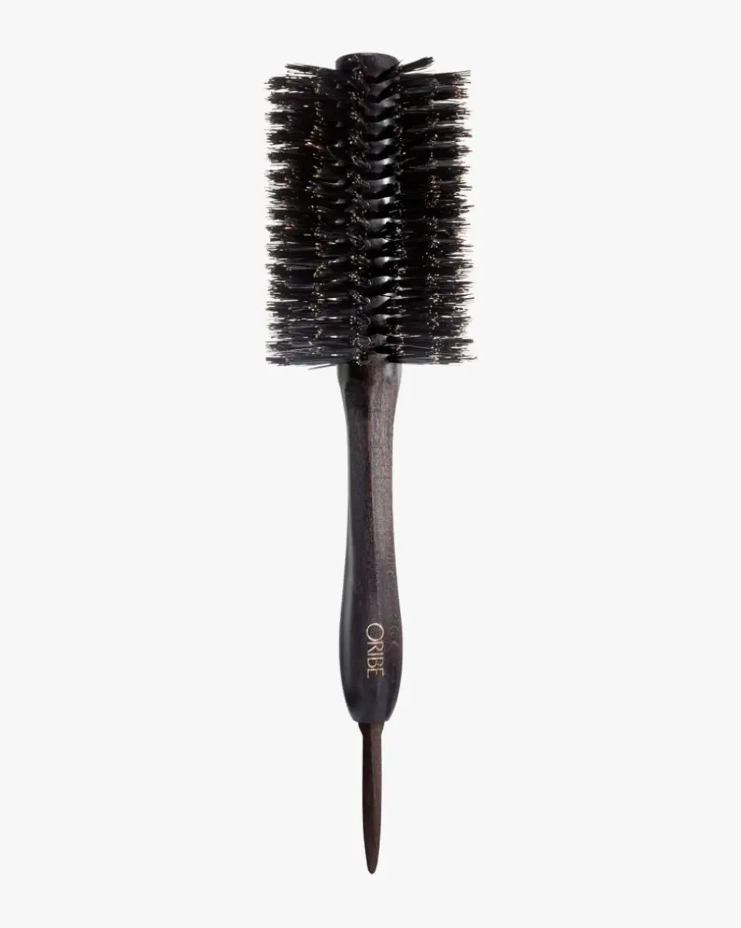 Oribe Large Round Brush. Denne signaturbørsten er laget i europeisk bøketre og kombinerer håndverksdesign med ergonomiske håndtak for perfekt grep og balansert vekt. Alle børster er lakkert for hånd. Selve børsten kommer i en blanding av høykvalitets villsvin og nylonbust med en naturlig gummipute. Busten og nylonavrundede endene stimulerer delikat hodebunnen og polerer håret for en ultra-elegant, skinnende finish. Laget i Italia.