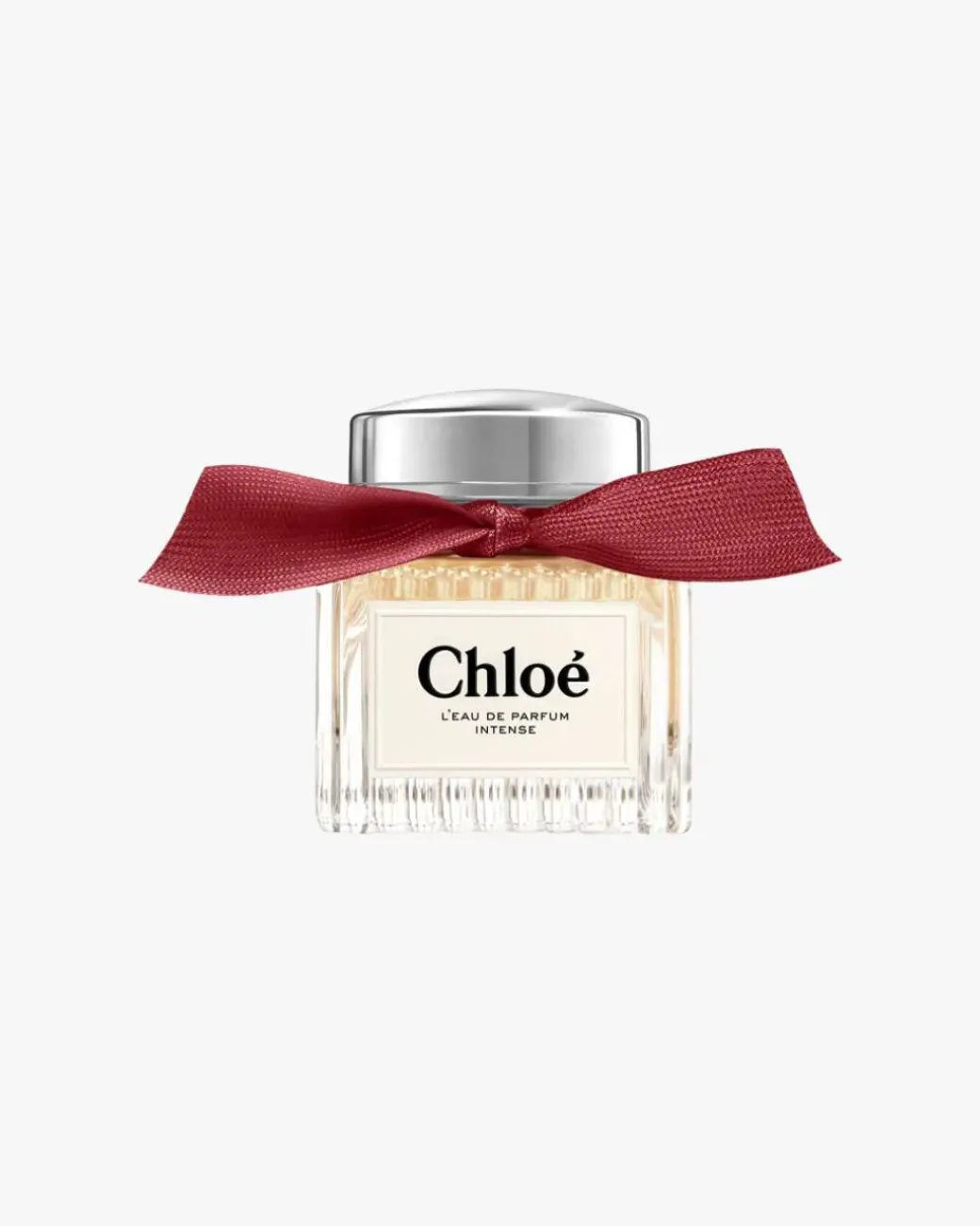 For L’Eau de Parfum Intense har den berømte plisserte Chloé-parfymeflasken fått et nytt utseende, nå stemplet med en elegant svart og grågul etikett for en enda mer moderne og raffinert stil. Båndet har også fått en ny, dyp granatfarge, som gjenspeiler duftens komposisjon og blomsten i hjertet.