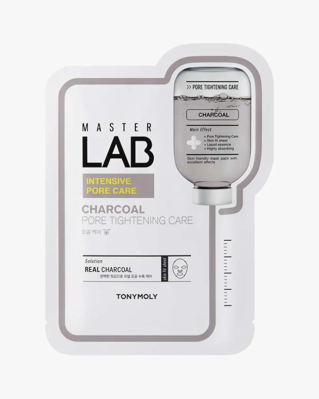 Tonymoly Master Lab Sheet Mask Charcoal er en rensende ansiktsmaske i sheet maske som bidrar til å redusere porenes størrelse.