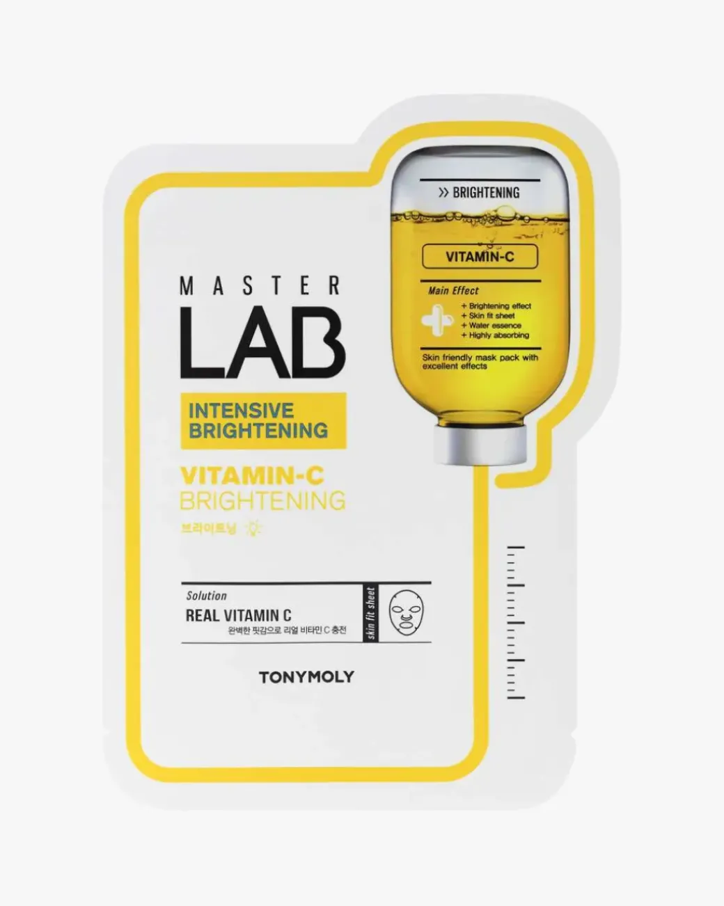 Tonymoly Master Lab Sheet Mask Vitamin C er en sheet mask som bidrar til en klarere hud. Denne masken, beriket med vitamin C, er designet for å lysne og forbedre hudens klarhet. Master Lab-maskene er laget av en ultratynn og hydrerende rayon, som forsiktig omslutter ansiktet.