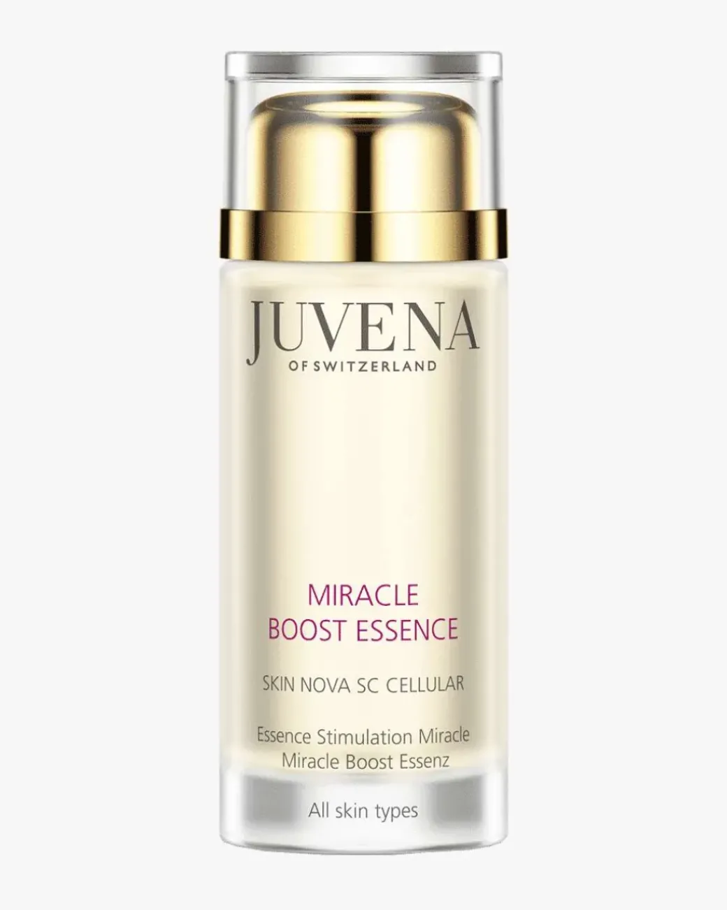 Juvena Miracle Boost Essence er det første steget i hudpleierutinen mot forbedret, glatt og fuktbalansert hud. Kombinasjonen av høyteknologisk peptid AGP (aquaglyceroporin) og Juvena SkinNova SC Technology har en synergieffekt som gir deg en ekstra fuktighetsboost fra innsiden. Samtidig forbedres både hudstrukturen og funksjonene.