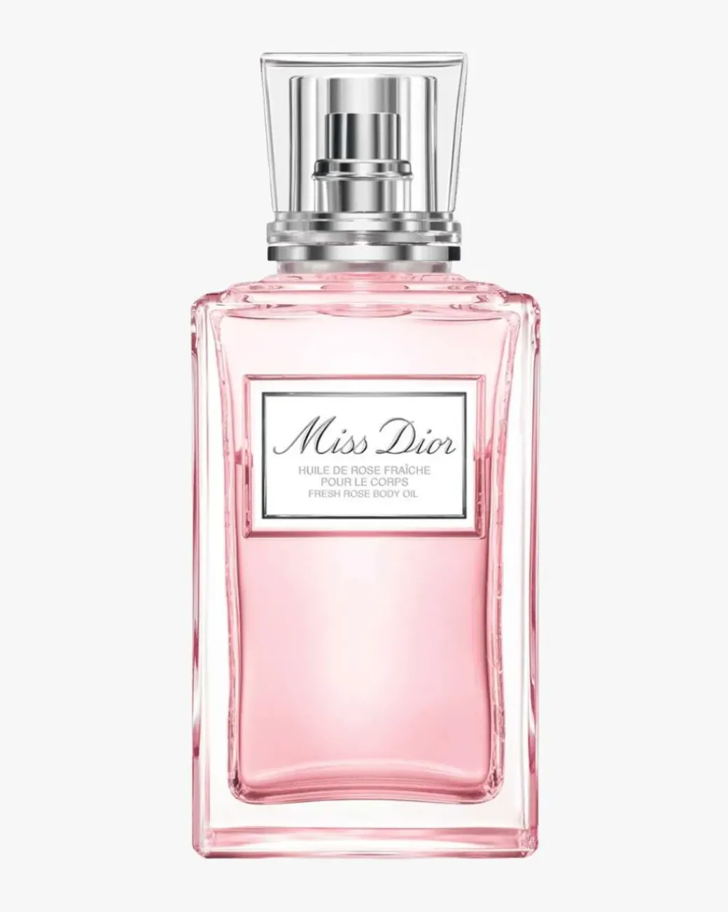 DIOR Miss Dior Fresh Rose Body Oil er en dobbeltvirkende roseolje som toner og tilfører hud og hår næring. Rist flasken for å aktivere de to fasene: Centifoliarosevann tilfører den tørre oljen en lett og frisk kvalitet, og gir en satengaktig finish fri for oljerester. Den beskytter hud og hår, samtidig som den forsterker lukten av din Miss Dior-duft.