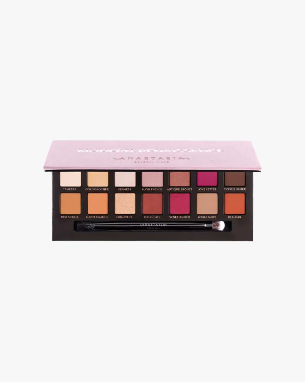 Anastasia Beverly Hills Modern Renaissance Eye Shadow Palette består av 14 nøytrale og bærtonede nyanser. Skyggene er sterkt pigmentert og har en lett blendbar formel. Myk børste inkludert. Cruelty-free.