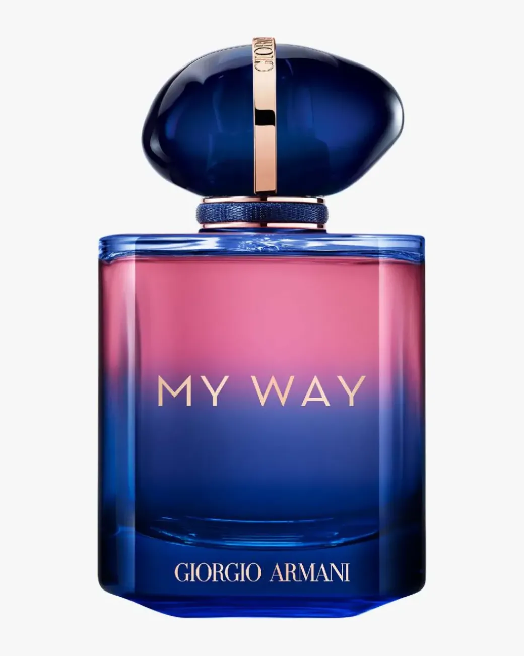 Giorgio Armani My Way Parfum er en invitasjon til en reise mot selvoppdagelse, og fanger den livsbekreftende følelsen av et steg inn i det ukjente. En intens og treaktig pudret bukett skapt av kontrasten mellom den strålende tuberosen og den majestetiske blå bleke irisen, innkapslet i en ny flakong i kontrasterende farger, kledd i toner som går fra blekkblått i bunnen til strålende rosa i halsen.