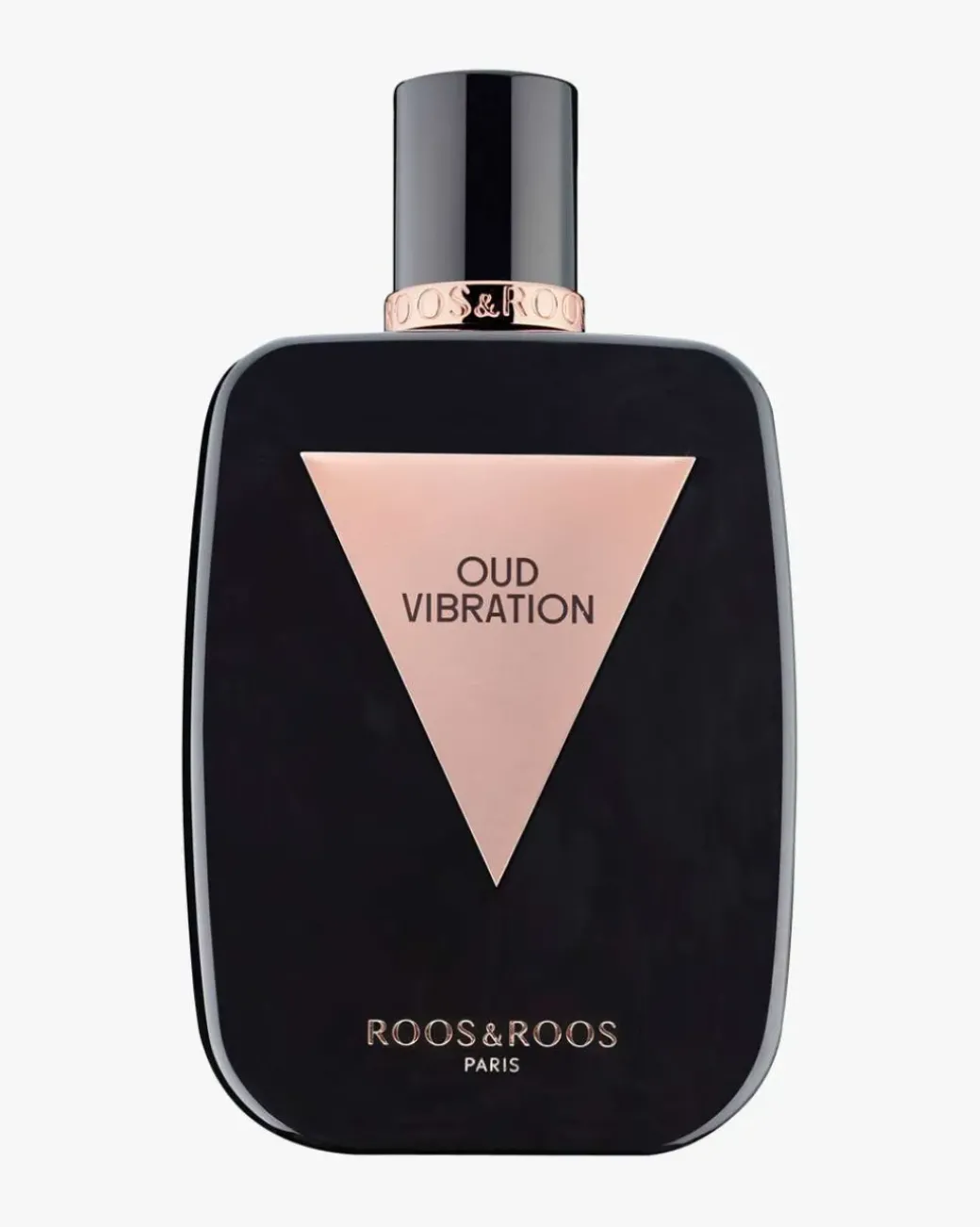 Roos & Roos Oud Vibration Eau de Parfum. En allment sensuell parfyme som starter med en fløyelstone av bringebær tilsatt kardemomme. Et varmt og krydret floralt hjerte, med bulgarsk rose og geranium, kunngjør den fascinerende rikdommen til Oud-akkorden og uttrykker en svært ønskelig intensitet med sedertre og sandeltre.