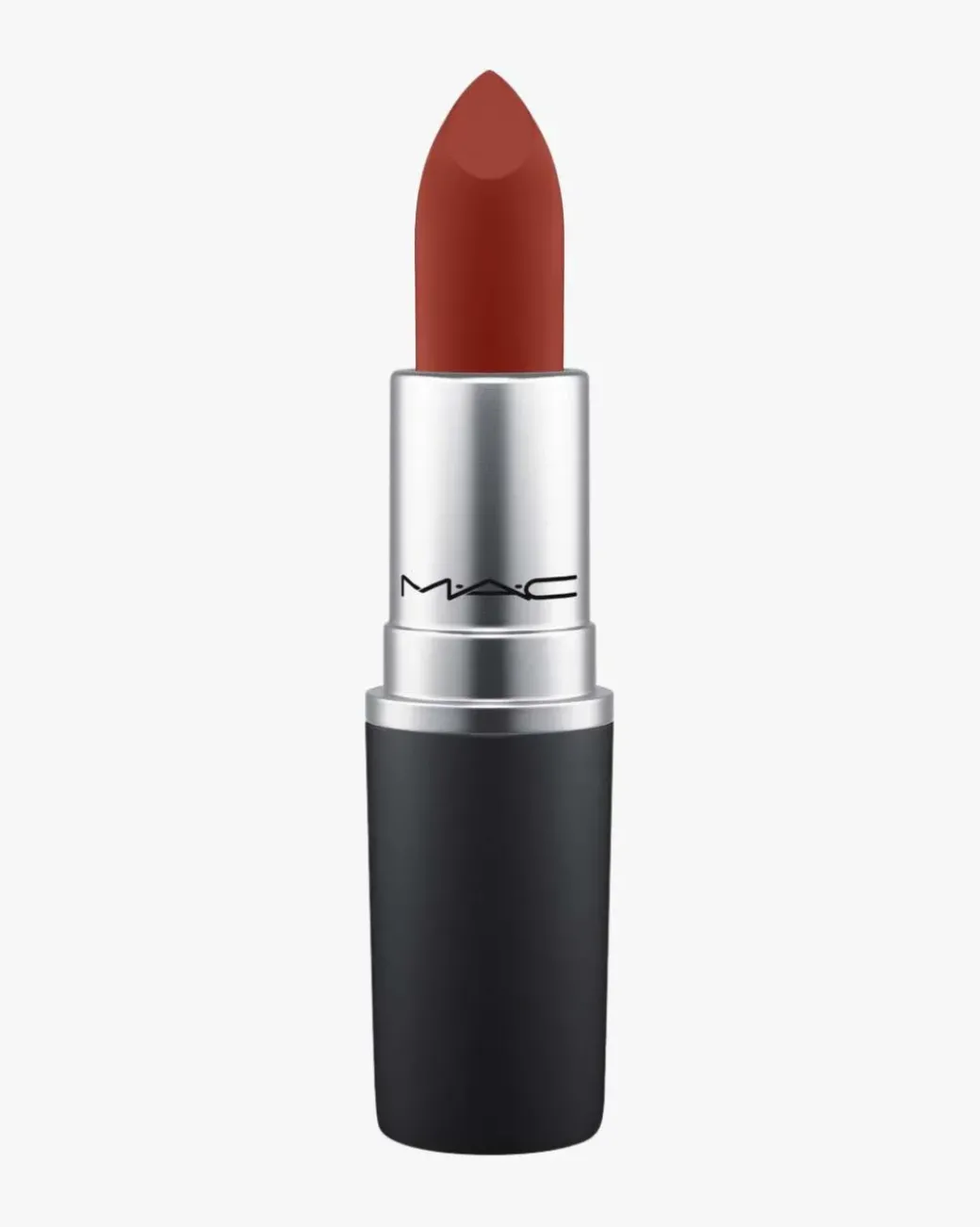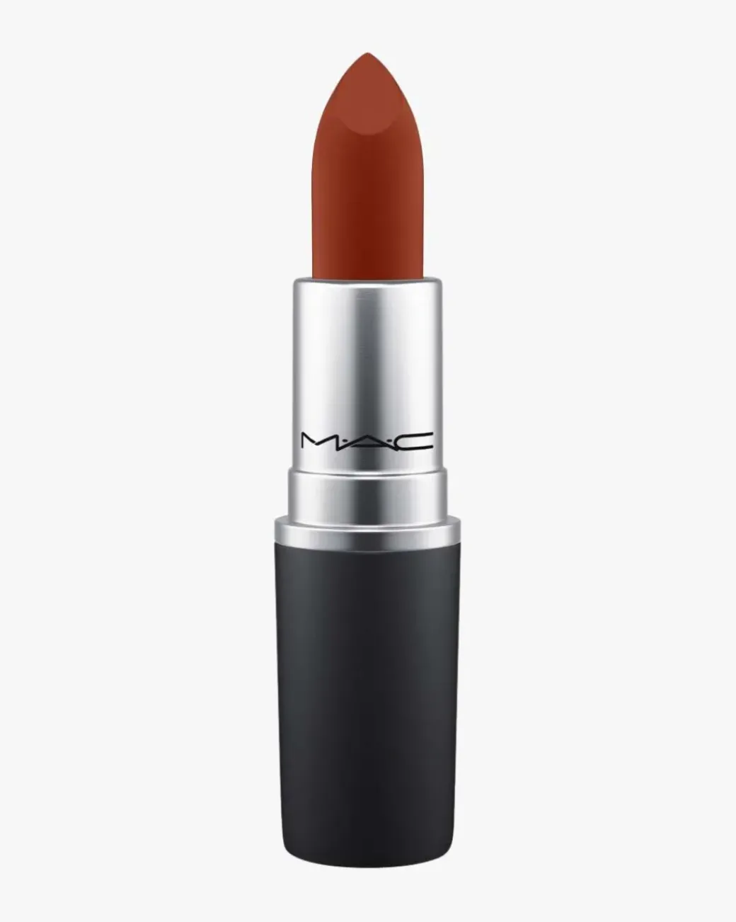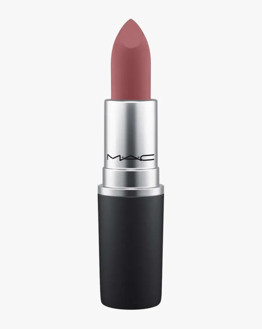 MAC Cosmetics Powder Kiss Lipstick ble utviklet for å gjengi en backstage teknikk hvor man blander ut kantene av en matt leppestift for en disig effekt. Med fuktgivende pudderpigmenter føles den som en fuktgivende leppebalsam, samtidig som den gir en fantastisk matt farge. Resultatet er det matte looket til en klassisk matt leppestift, men med en myk følelse som en leppebalsam.