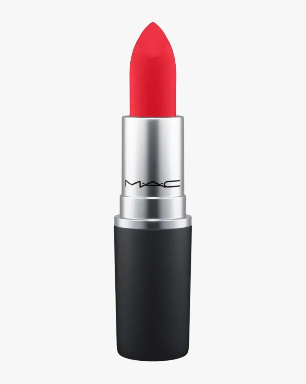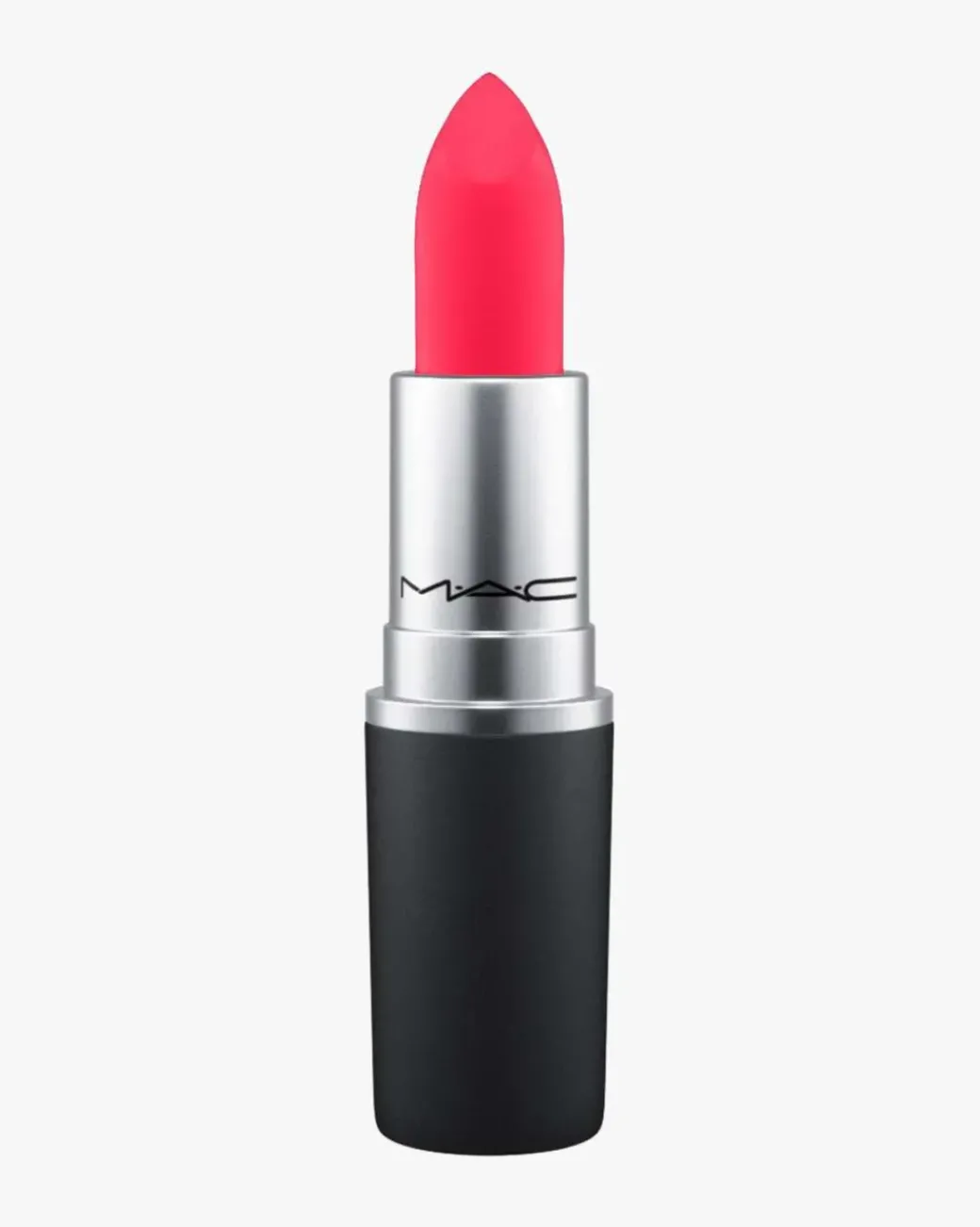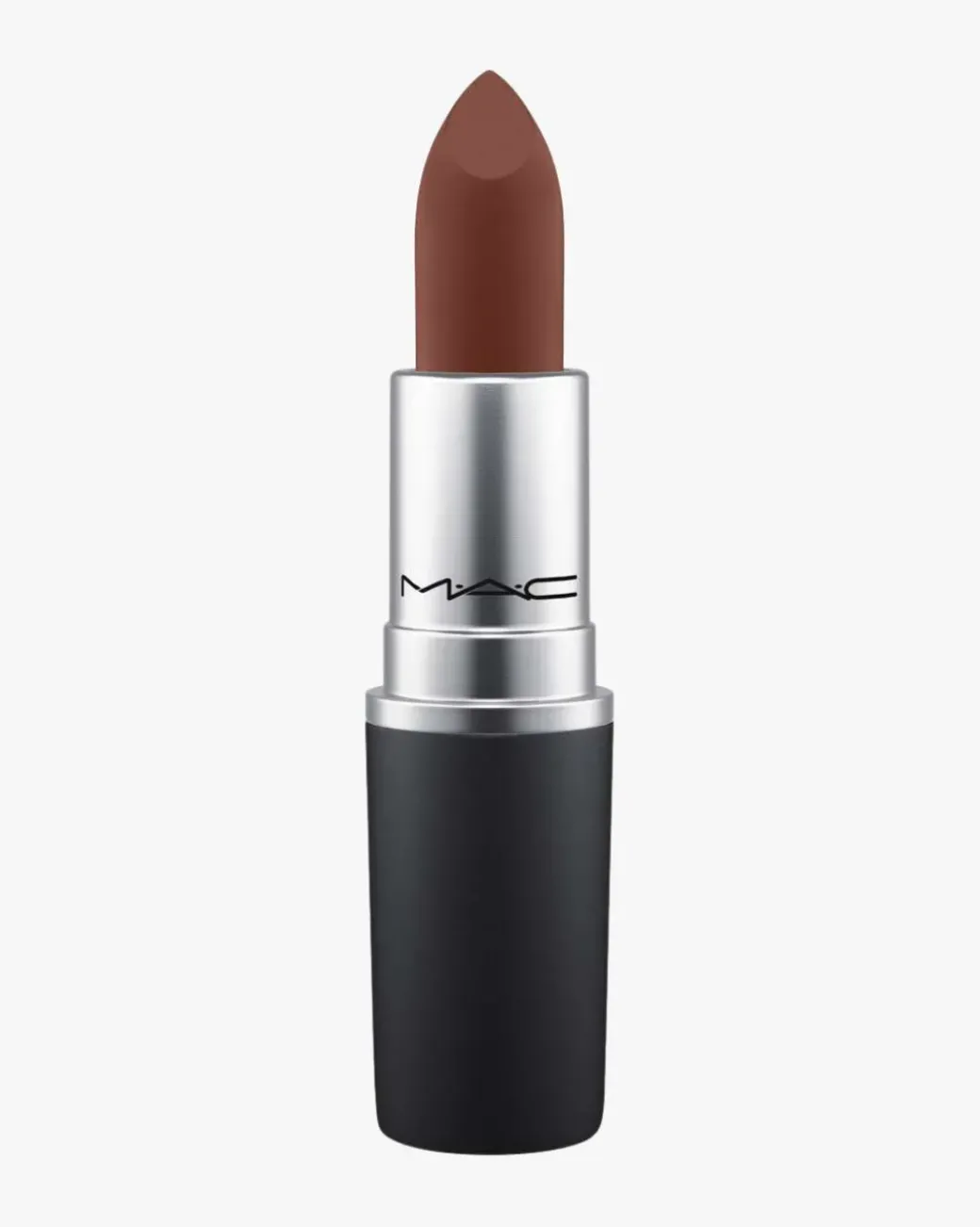 MAC Cosmetics Powder Kiss Lipstick ble utviklet for å gjengi en backstage teknikk hvor man blander ut kantene av en matt leppestift for en disig effekt. Med fuktgivende pudderpigmenter føles den som en fuktgivende leppebalsam, samtidig som den gir en fantastisk matt farge. Resultatet er det matte looket til en klassisk matt leppestift, men med en myk følelse som en leppebalsam.