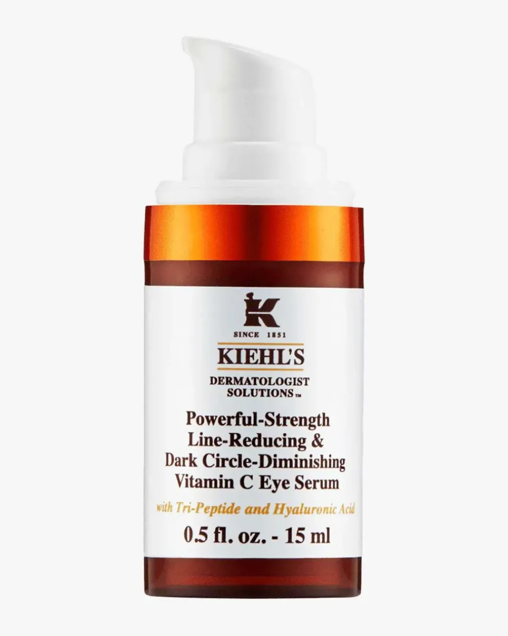 Kiehl’s Powerful Strength Dark Circle Reducing Eye Serum er et effektivt øyeserum som synlig reduserer fine linjer, rynker, hevelser og mørke ringer under øynene. Dette effektive serumet inneholder 10 % ren C-vitamin, tripeptider og hyaluronsyre og er spesielt fremstilt for den sarte huden rundt øynene. Du får et friskere og lysere uttrykk i øyepartiet i løpet av 28 dager. Testet av hudleger og øyeleger, og velegnet ved bruk av kontaktlinser.
