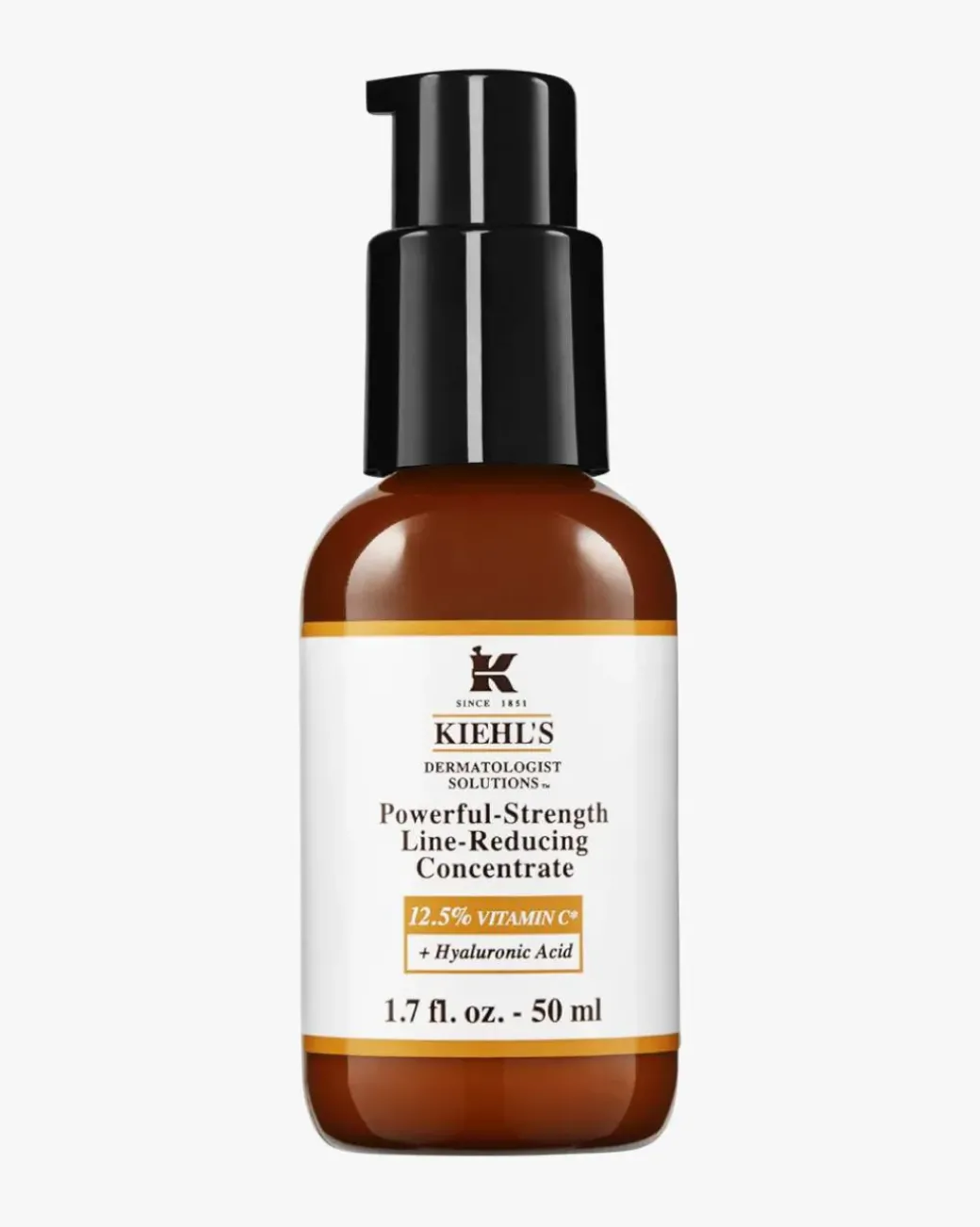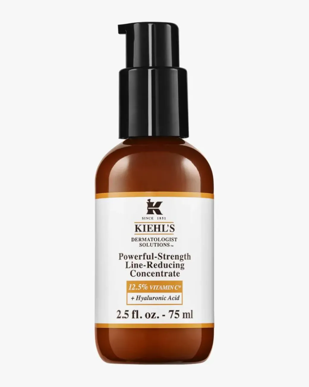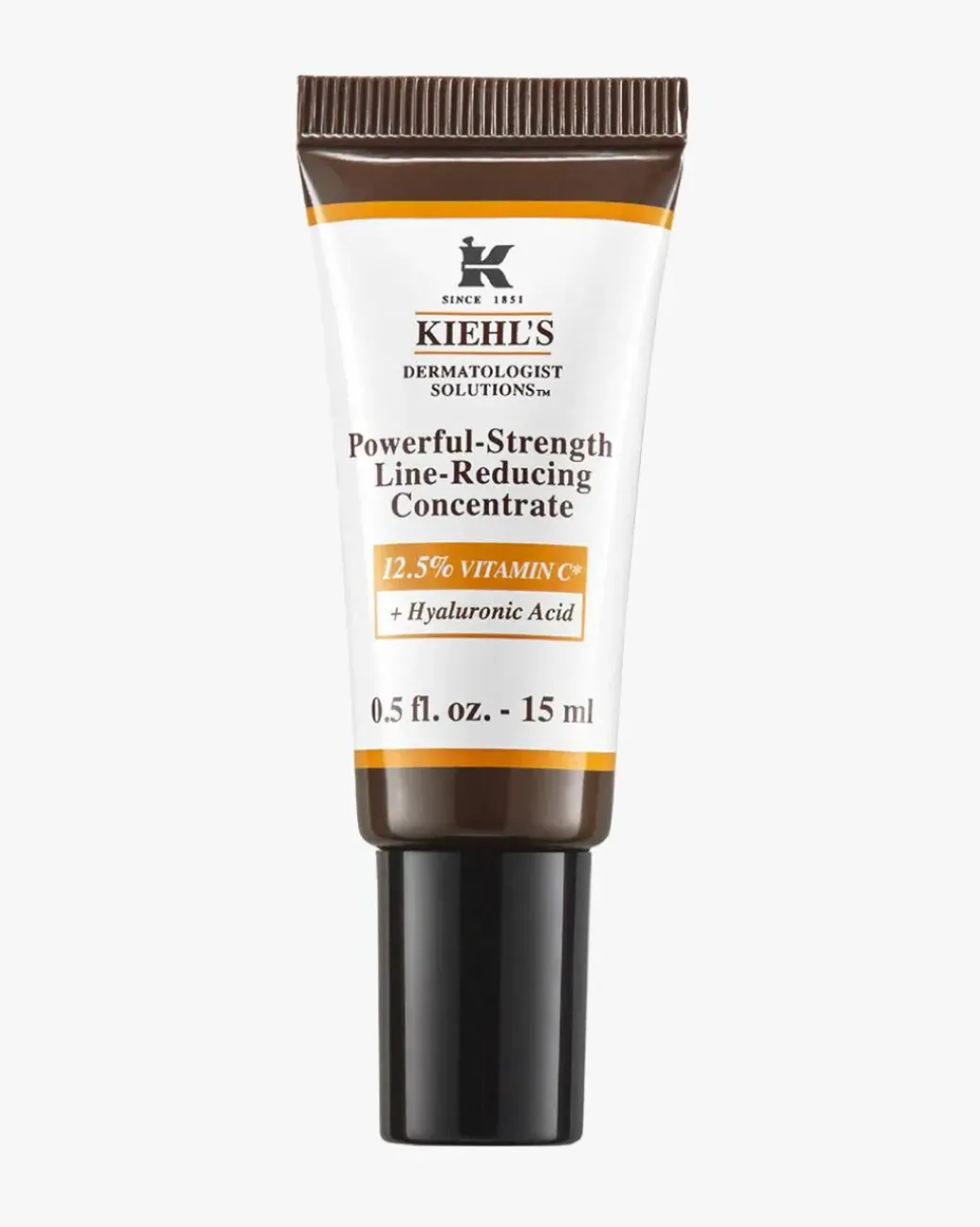 Kiehl's Powerful-Strength Line-Reducing Concentrate, gir fornyet glød, strammer opp huden og reduserer synligheten av rynker og porer. Dette vannfrie konsentratet er rikt på C-vitamin (inneholder 10,5 % L-askorbinsyre og 2 % askorbylglukosid) samt hyaluronsyre. Et effektivt anti-age serum som forbedrer hudens utseende og gir fornyet glød.