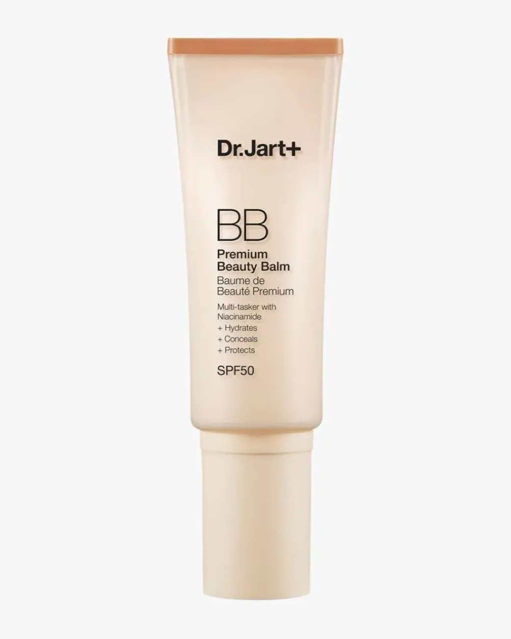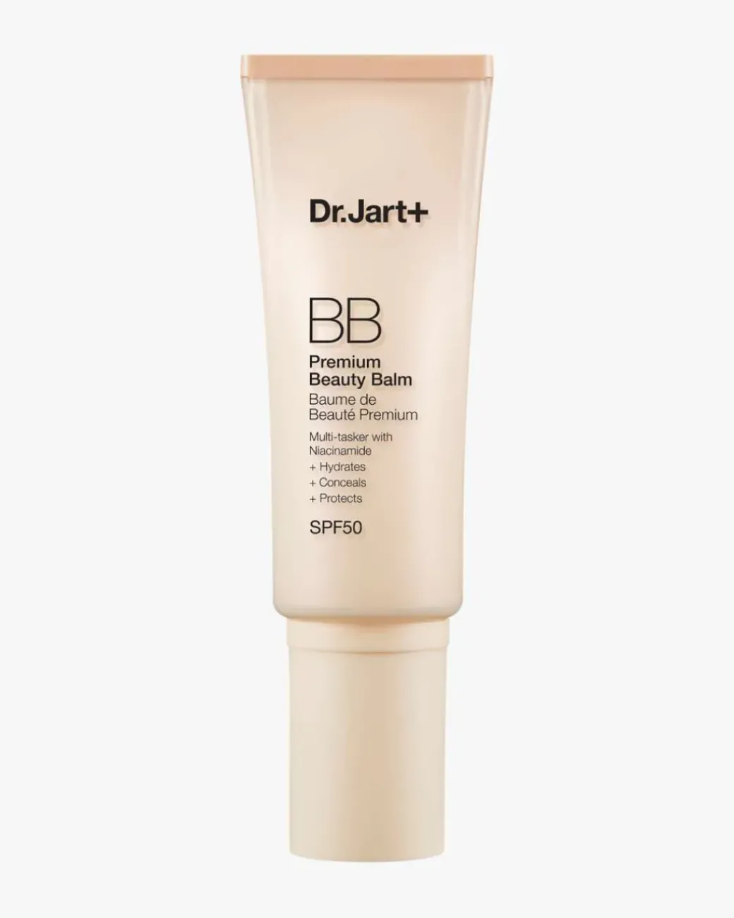 Dr.Jart+ Premium BB Beauty Balm SPF 50. Fantastisk hudpleie i en tube. Delvis makeup, delvis hudpleie, alt i ett. Denne multifunksjonelle formelen med fargekorreksjonspigmenter fukter, beskytter og skjuler øyeblikkelig. Den lette, kremete teksturen sprer seg ubesværet over huden og gir en naturlig finish som fortsatt ser ut som deg. Du kan også bygge den opp for mer dekning. Det er det beste av det beste!