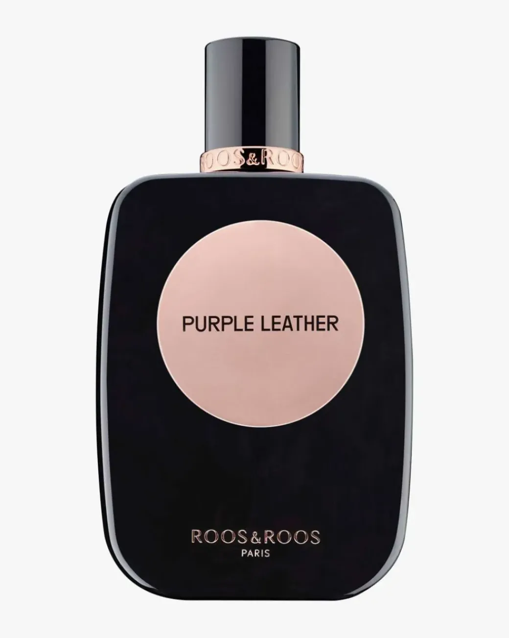 Roos & Roos Purple Leather Eau de Parfum. Den tidløse elegansen til en oud pakket inn i et skinnplagg. Kardemomme åpner duften med en frisk og aromatisk tone, opplyst av bergamott og oppvarmet av kanel. Den uforglemmelige lærnoten sammen med oud, safran og sypress gir et levende spor, forsterket av røkelse og patchouli.