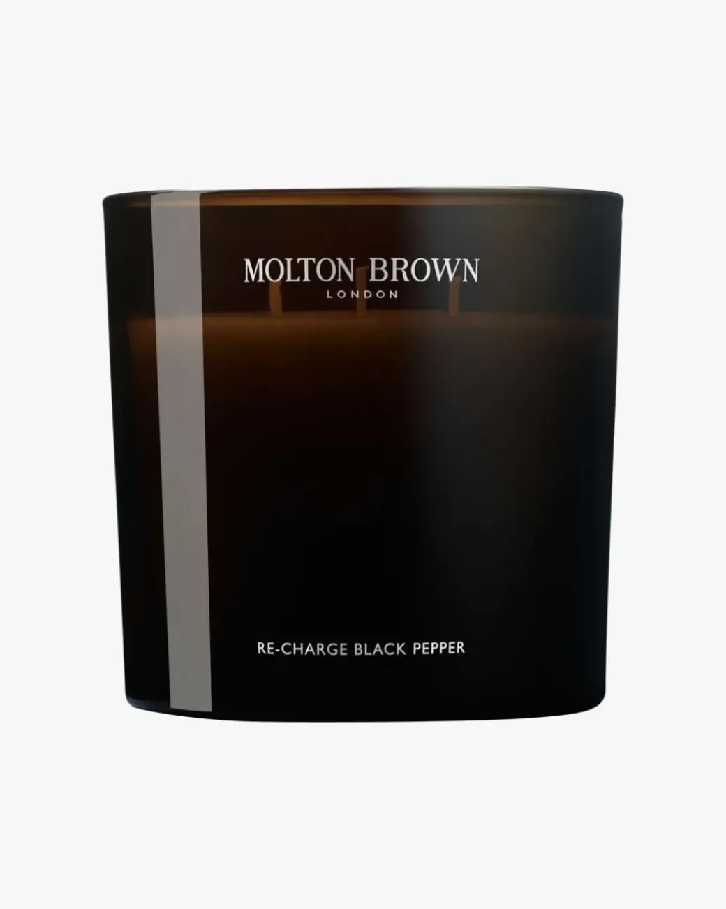 Molton Brown Re-Charge Black Pepper Three Wick Candle med treveker inneholder den ikoniske duften av oppvarmet sort pepper, koriander og vetiver. Perfekt for å gi stuen eller soverommet et karismatisk preg.