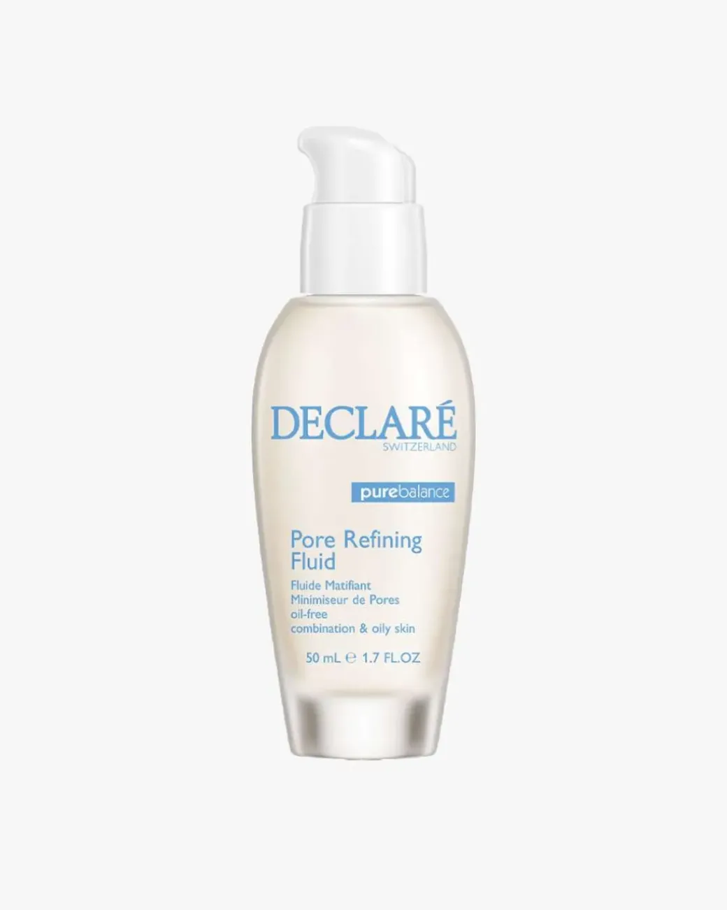 Declare Sebum Reducing & Pore Refining Fluid. Effektiv behandling for de som plages av store porer og fet hud. Den lette konsistensen inneholder gjærekstrakt som regulerer talgproduksjonen og minimerer porer. Ved regelmessig bruk vil huden bli jevnere og mattere.