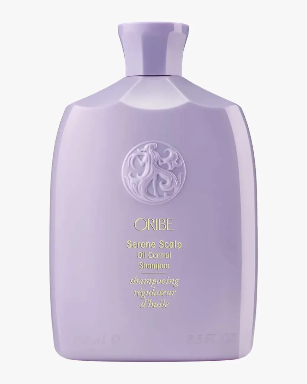Oribe Serene Scalp Oil Control Shampoo. Forleng tiden (og sinnsroen) mellom hver hårvask. Denne rensende sjampoen rengjør håret skånsomt ved hjelp av en blanding av grønne marine alger og et sukkeravledet prebiotic for å redusere og kontrollere olje, samtidig som den gjenoppretter balansen i hodebunnens mikrobiom.