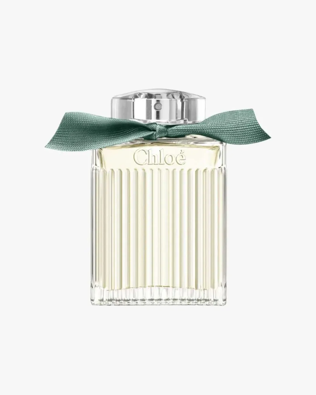 Chloé fortsetter arbeidet med å redusere klimaavtrykket sitt, derfor består 25% av glasset og 40% av pappen til esken nå av resirkulerte materialer. Den tidløse vintageflasken er inspirert av Chloés’ ikoniske Crêpe de Chine-bluse med den feminine knytesløyfen, og flasken er dekorert med en håndknyttet sløyfe i 100% resirkulert materiale i en ny og sterk grønnfarge.